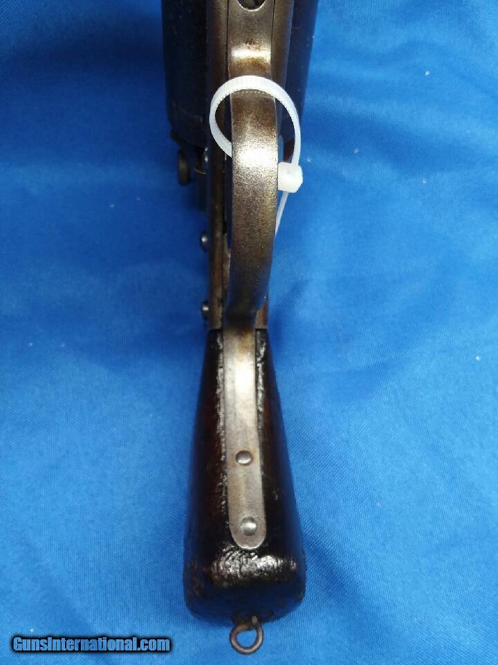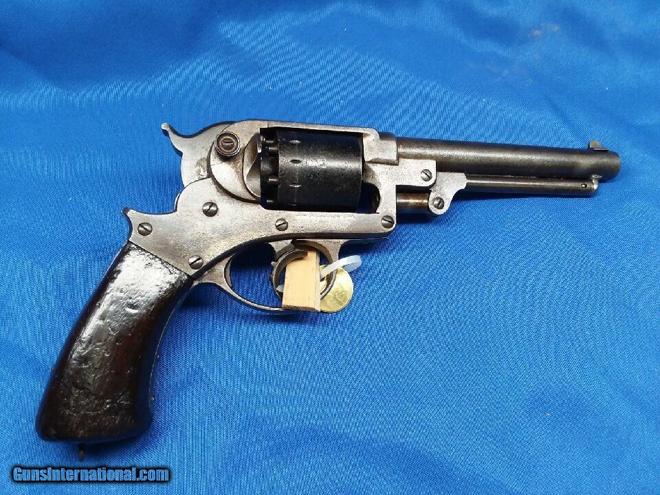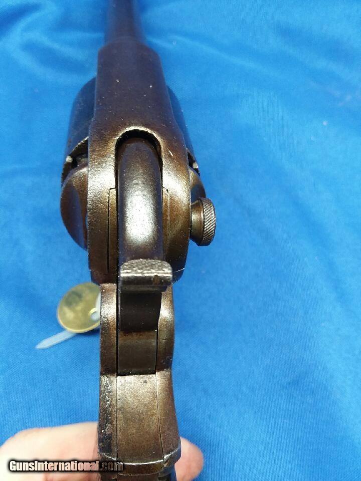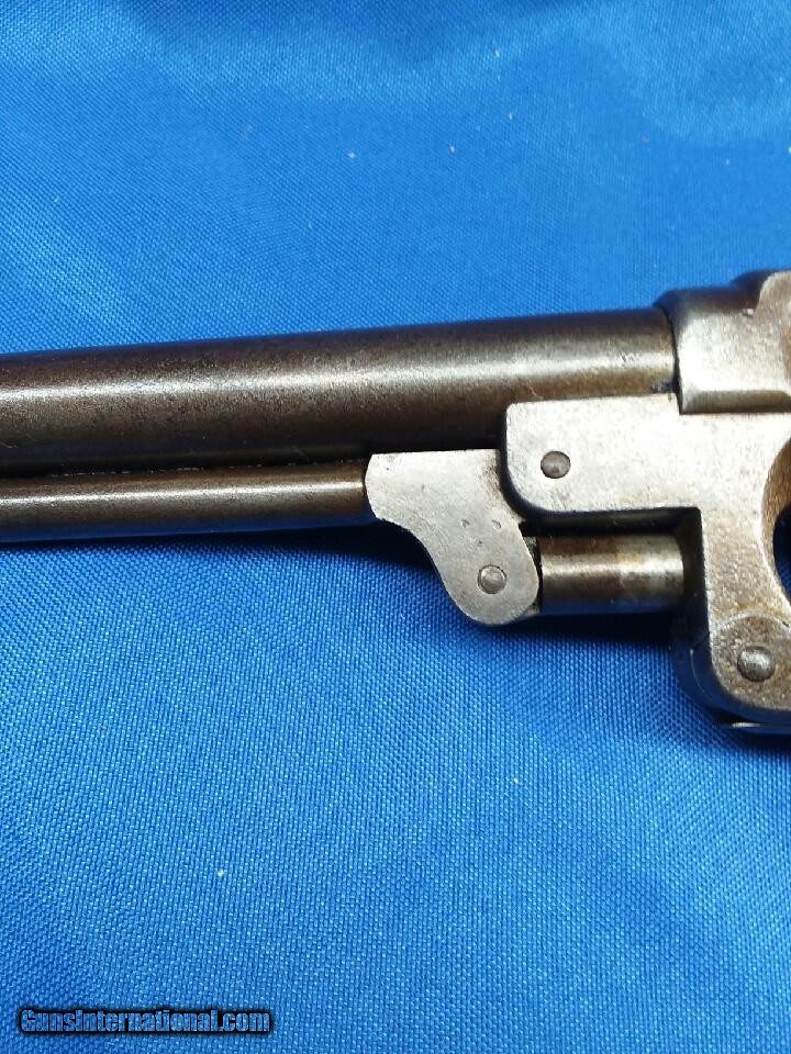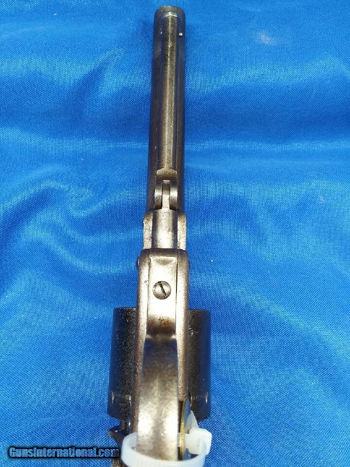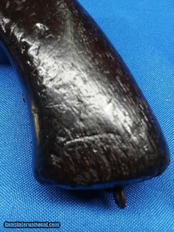 Description: SOLD. Starr Revolver. This is a Starr Arms Company Model 1858 Double Action Army Revolver SN #8455. It is a 6-shot, .44 caliber firearm. 23,000 double action revolvers were produced by Starr in .44 caliber with the vast majority being sold to the U.S. Gov’t. This is one of those. It differed radically from the other revolvers in its class by being double actioned. The large, curved trigger cocked the hammer and revolved the cylinder, and, at the end of travel, tripped the trigger at the back of the trigger guard, firing the revolver. The double actions would have been issued primarily to the cavalry. Ironically, despite being ahead of its time, the Starr Model 1858 Double Action Revolver was superseded by the Model 1863 Single Action Revolver The overall condition is good with moderate pitting overall. Original patina. Strong action. The grip is well-used with bumps and dings. The left side of the grip contains the remnant of a cartouche. Legible markings. Numbers match. LEGAL: No FFL or C&R license is required! I will require a photo copy of your state ID or driver’s license with payment to verify your age. I am a collector – not a dealer, so it is your responsibility to know your local laws regarding the transfer of antique guns before . It is my intent to follow ALL national, state and local laws. If the item cannot legally be sent to you, I will charge a 20% restocking fee. All firearms are being sold as antiques and I make NO warranties or guarantees, whatsoever, as to a firearm’s safety. All firearms should be inspected by a qualified gunsmith before firing. SHIPPING: No local pick up. No international shipments. Shipping within the continental United States will be $65 for long arms and $45 for pistols. Shipments to Alaska and Hawaii will incur additional charges (I’ll only charge the incremental difference in shipping costs). I’ll do my best to ship as quickly as possible, but please keep in mind that I’m an individual and don’t have a shipping department (unless you count my wife). GENERAL: I’m new to GunsInternational but have been a long time participate on both and Ebay. Please check out my ratings: Username in is “intocw” and in Ebay is “n2cw”. SOLD Antique: Yes Handgun Caliber: .44 Manufacturer: Starr Model: DA Serial Number: 8455 |