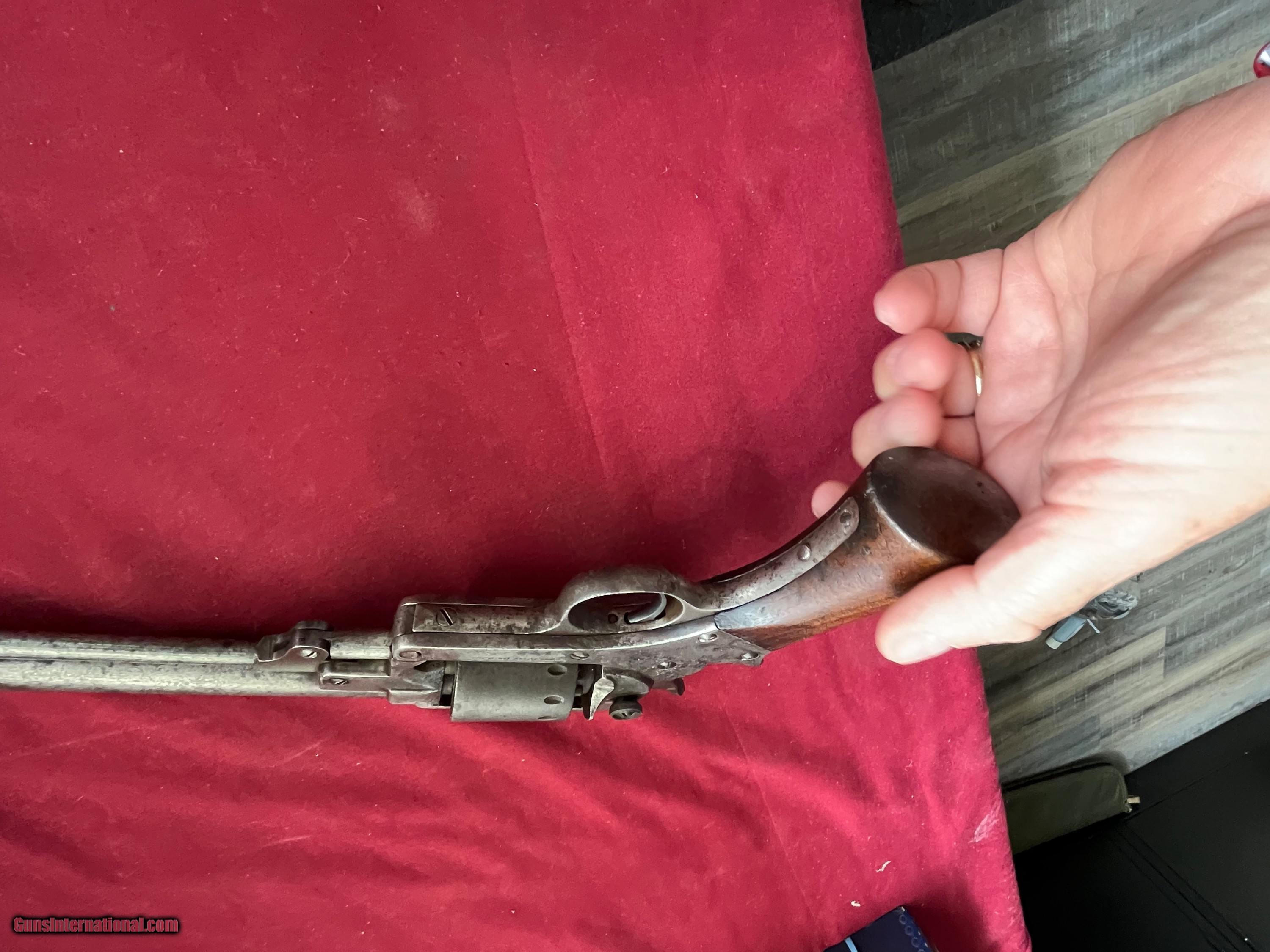 Description: STARR ARMY MODEL 1863 SINGLE ACTION PERCUSSION REVOLVER ,SER# 51209( ALL MATCHING NUMBERS) 8 INCH BARREL . GOOD TIGHT ACTION THAT FUNCTIONS FINE, METAL SHOWS A GRAY / BROWN PATINA. GOOD SOLID GRIPS. Model 1863 Army Revolver, with its eight-inch barrel. Approximately 32,000 Model 1863 revolvers were manufactured between 1863 and 1865. Of these, about 25,000 were purchased under contract by the U.S. government. The Starrs were the only American-made revolver produced during the Civil War that were available in both single- and double-action models. EASTERN BRANCH FIREARMS ADD 40.00 SHIPPING – NEXT DAY AIR SHIPPING ADD 50.00 SHIPPING – LONG GUNS GROUND OPTIONAL INSURANCE IS AVAILABLE AT 1.25 PER 100.00 Questions e-mail or call Glen at Eastern Branch Firearms 207-215-5021 TERMS – PLEASE READ BEFORE I DO NOT HAVE A LAYAWAY OPTION ( WE ACCEPT CREDIT CARDS ) -- I GET ALOT OF REQUEST FOR TRADES, I WOULD PERFER NOT TO DO TRADES ON MY INTERNET LISTINGS PAYMENT OPTIONS- We accept money orders, cashier’s checks , bank checks. sorry no personal checks. We accept all major credit cards please add 3% to the ’s cash discount price.(Shipping within the state of Florida - Florida Residents must pay sales tax) .Handguns and long guns do need to be shipped separate. PLEASE do not send payment via FED EX . USPS & UPS are fine. Thank you. We include a signed copy of our FFL with each firearm shipped. SAFTY NOTICE- Buyer is solely responsible for determining that a used gun is safe to shoot. The firearms offered have not been test fired but have been given a visual inspection only for purposes. It is a requirement that every used firearm is inspected by a qualified gunsmith before firing. By , the buyer agrees to hold seller harmless against damages, injury, or death caused by defective merchandise. RETURN POLICY- All firearms come with a 3-day non firing , non messing with ( turning srews ,taking apart,removing parts, scoping. firing, cleaning or messing with in anyway) inspection/return privilege.Inspection is based on a visual review of the gun to confirm the gun is in the condition stated. In the case of a return, buyer pays all shipping charges & if paid for with a credit card buyer absorbs the 3% credit card charges . So please ask questions BEFORE you bid. Thanks for Looking and Good Luck!! U.S. sales only, no exports…this includes antiques. I will ship to third party for exporting SOLD Antique: Yes |