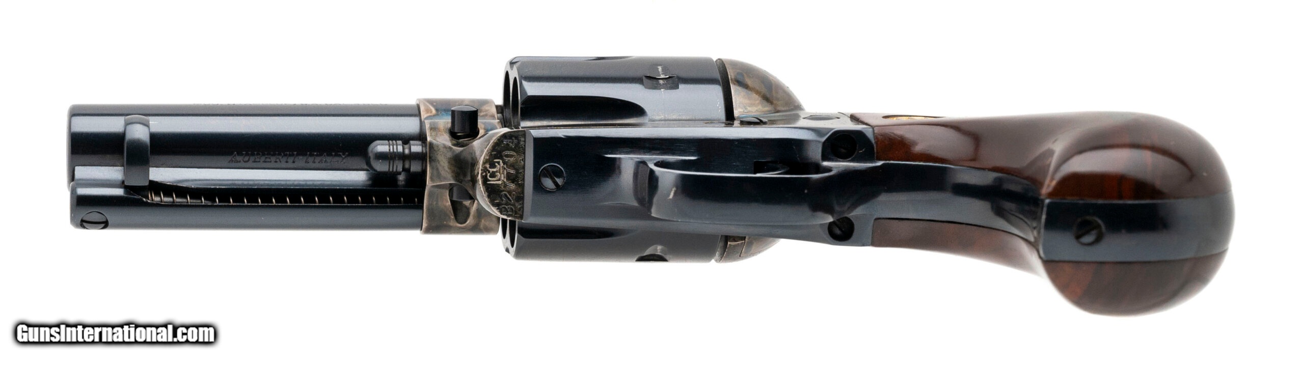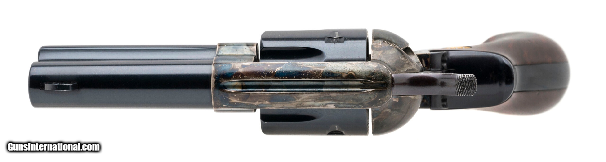 Description: "SN: B27704. Modern production. .45 Long Colt with a 3.5"" barrel. Bore is in excellent condition. Single action only revolver with a case colored receiver. Finish is in excellent condition. Wood grips are in excellent condition. Overall condition is excellent. SOLD |