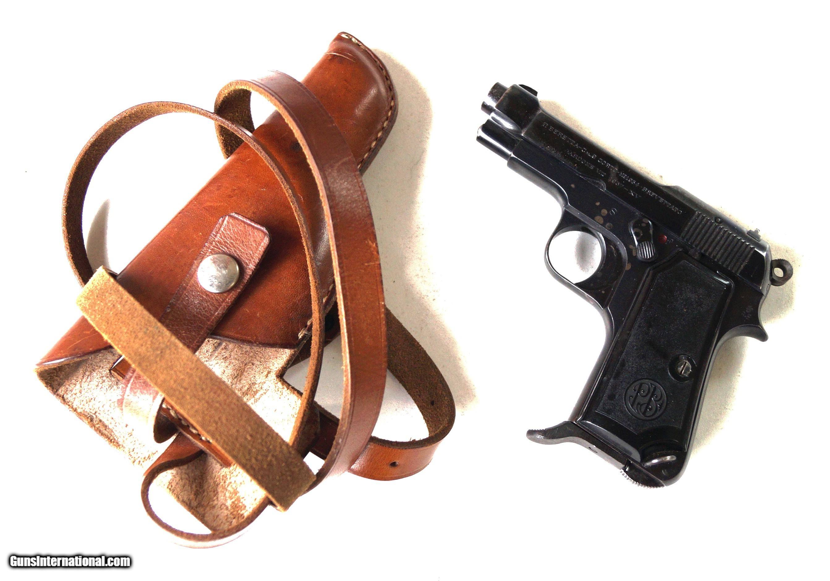 Description: THIS IS BERETTA MODEL 1934 RIG, 9MM. THE PISTOL IS IN VERY GOOD CONDITION. ALL ORIGINAL, NUMBER MATCHING, VERY GOOD BORE AND GRIPS, MECHANICALLY CORRECT. THE RIG CONSISTS OF THE PISTOL, 1 ORIGINAL MAGAZINE, 1 ORIGINAL SHOULDER HOLSTER AND A SOLDIERS BRING BACK PAPER FROM WWII. SOLD Curio/Relic: Yes |