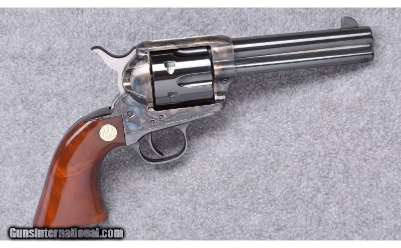 Description: Clean revolver shows few minimal handling marks, light cylinder line. .45 Colt SOLD Metal Condition: Blued and Case Colored Wood Condition: Smooth Wood w/ Beretta Medallion Bore Condition: "Bright,Sharp Barrels: 4 3/4 BBL Triggers: Single Action Weight: 37 oz Sights: "Notched Frame, Blade Front Item Location: Buda, TX |