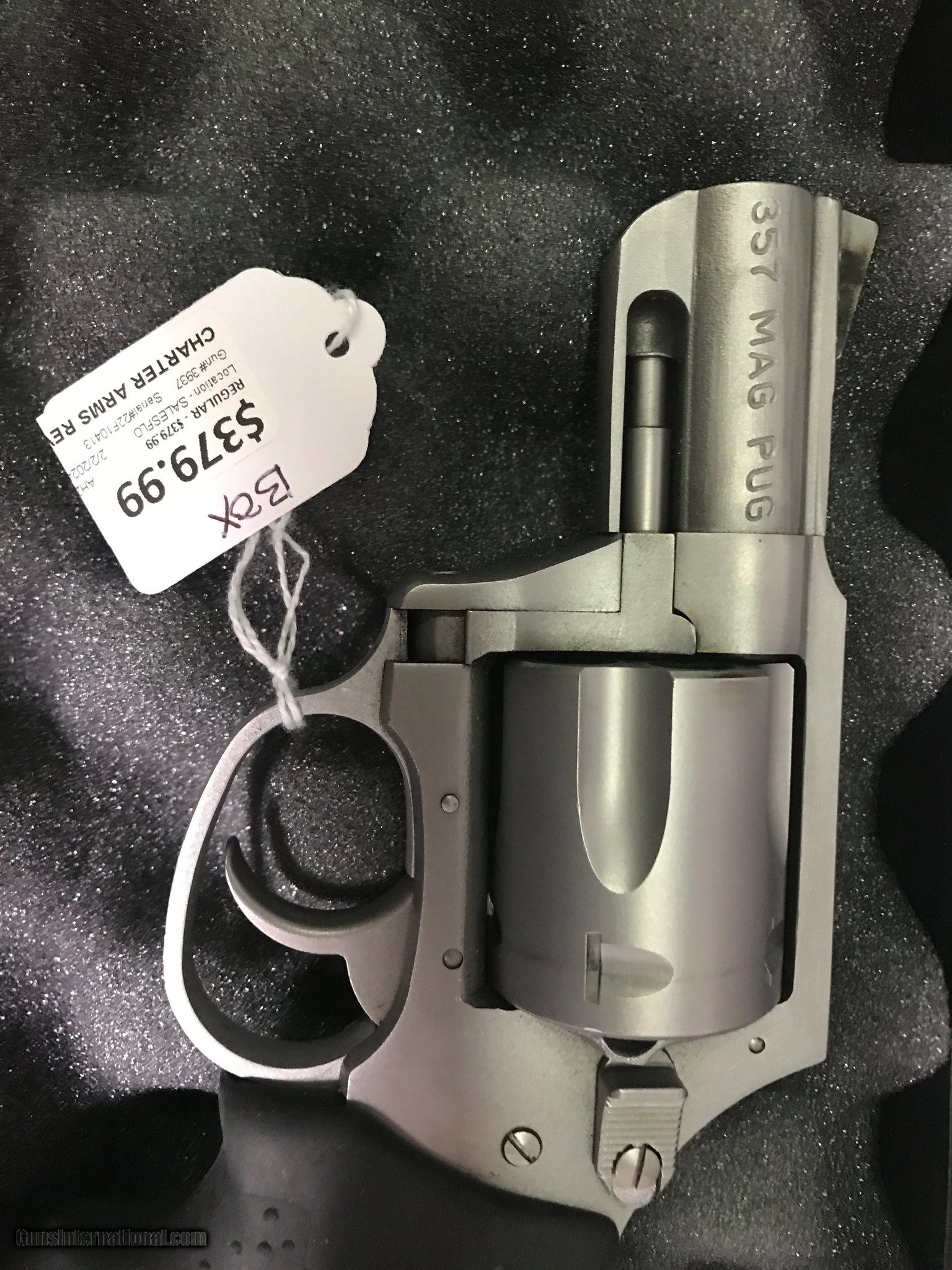 Description: Guns Listing ID: 1158418 Normal gun wear Rubber grips Used gun SOLD Manufacturer: CHARTER ARMS Model: .357 Mag Pug Caliber Info: .357 MAG Condition: Used - Non-Certified Barrels: 2.25 BARREL Finish: STAINLESS |