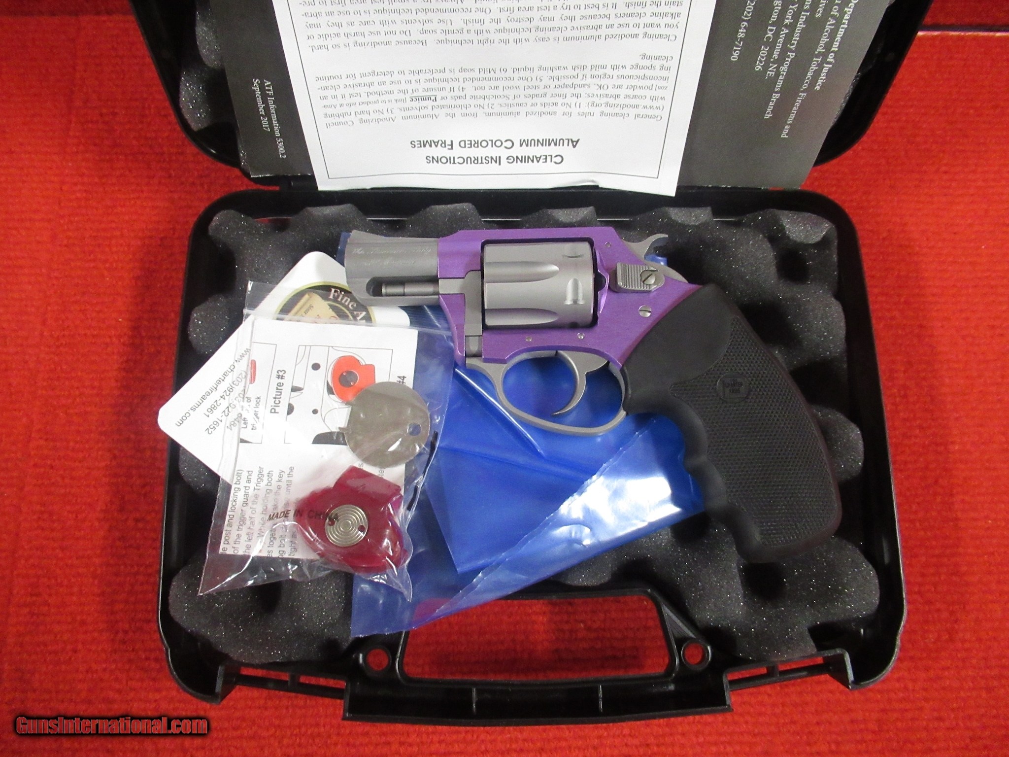 Description: Guns Listing ID: 416000 #28A Gun is in excellent working condition. Gun comes in its original case with all original paperwork. Gun has light ring around cylinder from being shot, other than that gun is very clean. Gun comes with trigger lock. SOLD Manufacturer: CHARTER ARMS Model: 53240 Undercoverette Lavender Lady 32 H&R Caliber Info: 32 MAGNUM Condition: Used - Non-Certified Barrels: 2 BARREL Finish: LAVENDER AND STAINLESS |