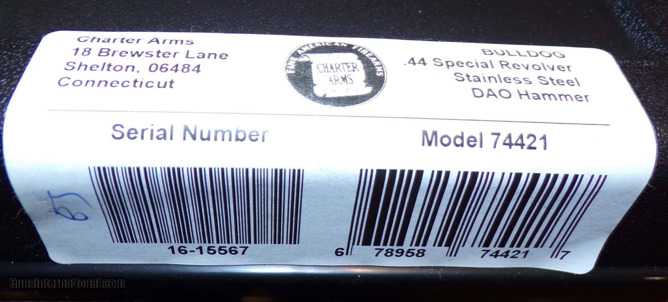 Description: CHARTER ARMS BULLDOG IN .44 CAL., WITH 3" BARREL. COLOR SILVER. CONDITION 98% LIKE NEW. SERIAL NUMBER 16-15567. CHARTER ARMS MODEL BULLDOG IN .44 SPECIAL CALIBER, FACTORY BOX WITH PAPERS, 98% LIKE NEW CONDITION, OUR STOCK # D1761. SOLD |