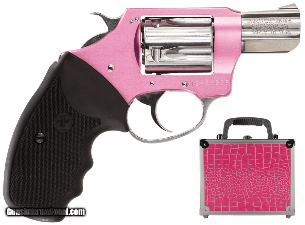 Description: Guns Listing ID: 1115 The Charter Arms Chic Lady is a singledouble action five shot snubnosed revolver. It is essentially a Charter Undercover Lite but with a lavender or pink anodized frame and hi-polished parts. The 12 oz Chic Lady features black synthetic grips 2 barrel fixed sights exposed spurred hammer and hammer block safety. The Chic Lady Off Duty has an internal hammer. The Chic Lady comes new in a pink faux alligator case and it is available with laser grips. Details Action SADA - Caliber .38 Special P - Capacity 5 - Material 7075 Aluminum - Finish Pink Hi-Polish Stainless - Grip Compact - Sights Fixed - Barrel Length 2 - Weight 12 oz - The Chic Lady is another model in Charters exciting line of colored revolvers. The heart of the Chic Lady is our popular Undercover Lite but with an attractive pink anodized frame and hi-polished parts. - Whether you carry a firearm for personal protection or peace of mind-this model provides impressive stopping power while weighing a mere 12 oz. - Constructed of tough aircraft-grade aluminum and steel the Chic Lady offers rugged reliability and comfort. This ultra-lightweight 5-shot .38 Special features a 2 barrel fixed sights and traditional spurred hammer. SOLD Manufacturer: CHARTER ARMS Model: CHIC LADY Caliber Info: .38 SPL Condition: new Barrels: 2 BARREL |