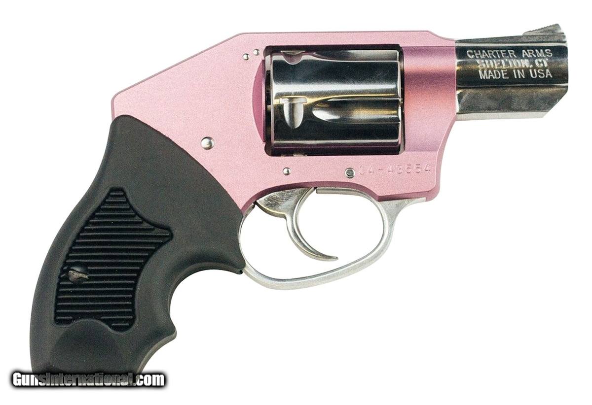 Description: Guns Listing ID: 473993 The Charter Arms Chic Lady is a singledouble action five shot snubnosed revolver. It is essentially a Charter Undercover Lite but with a lavender or pink anodized frame and hi-polished parts. The 12 oz Chic Lady features black synthetic grips 2 barrel fixed sights exposed spurred hammer and hammer block safety. The Chic Lady Off Duty has an internal hammer. The Chic Lady comes new in a pink faux alligator case and it is available with laser grips. Details Action SADA - Caliber .38 Special P - Capacity 5 - Material 7075 Aluminum - Finish Pink Hi-Polish Stainless - Grip Compact - Sights Fixed - Barrel Length 2 - Weight 12 oz - The Chic Lady is another model in Charters exciting line of colored revolvers. The heart of the Chic Lady is our popular Undercover Lite but with an attractive pink anodized frame and hi-polished parts. Whether you carry a firearm for personal protection or peace of mind this model provides impressive stopping power while weighing a mere 12 oz. This enclosed hammer double action revolver is ideal for tucking in a purse or pocket because the enclosed hammer will never snag. Constructed of tough aircraft-grade aluminum and steel the Chic Lady offers rugged reliability and comfort. This ultra-lightweight 5-shot .38 Special features a 2 barrel fixed sights and traditional spurred hammer. SOLD Manufacturer: CHARTER ARMS Model: CHIC LADY Caliber Info: .38 SPL Condition: new Barrels: 2 BARREL |