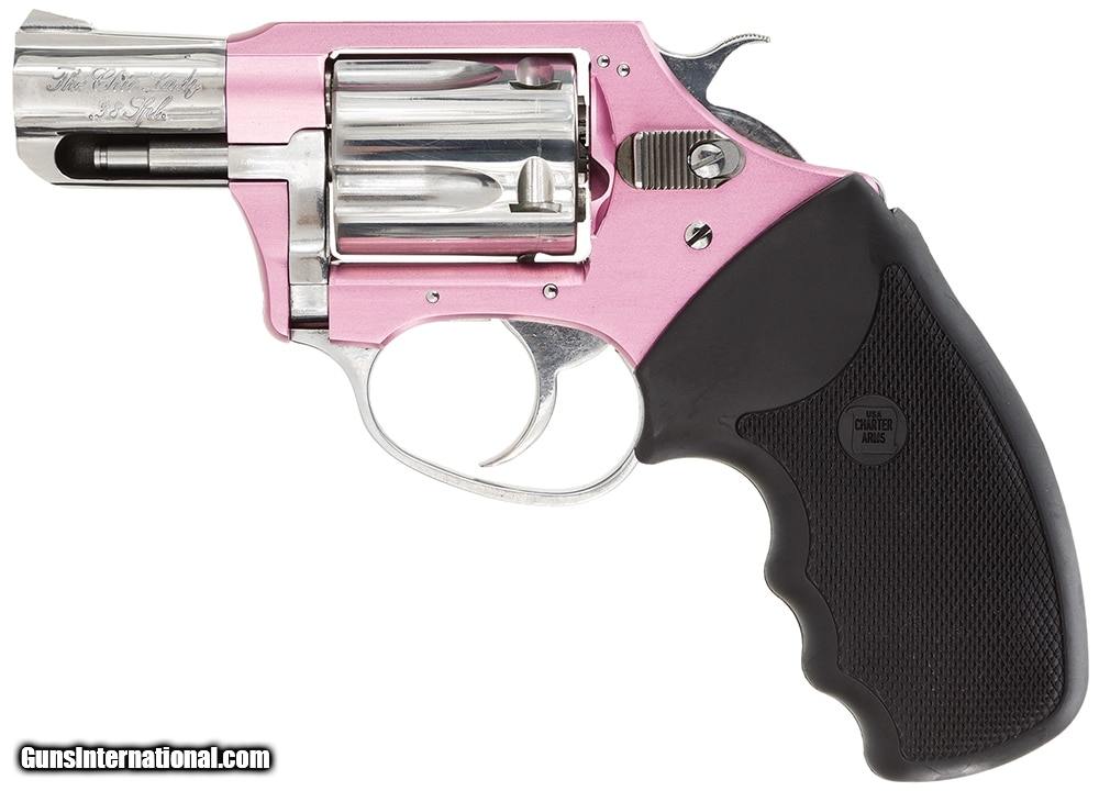 Description: Guns Listing ID: 1115 The Charter Arms Chic Lady is a singledouble action five shot snubnosed revolver. It is essentially a Charter Undercover Lite but with a lavender or pink anodized frame and hi-polished parts. The 12 oz Chic Lady features black synthetic grips 2 barrel fixed sights exposed spurred hammer and hammer block safety. The Chic Lady Off Duty has an internal hammer. Details Action SADA - Caliber .38 Special P - Capacity 5 - Material 7075 Aluminum - Finish Pink Hi-Polish Stainless - Grip Compact - Sights Fixed - Barrel Length 2 - Weight 12 oz - The Chic Lady is another model in Charters exciting line of colored revolvers. The heart of the Chic Lady is our popular Undercover Lite but with an attractive pink anodized frame and hi-polished parts. - Whether you carry a firearm for personal protection or peace of mind-this model provides impressive stopping power while weighing a mere 12 oz. - Constructed of tough aircraft-grade aluminum and steel the Chic Lady offers rugged reliability and comfort. This ultra-lightweight 5-shot .38 Special features a 2 barrel fixed sights and traditional spurred hammer. SOLD Manufacturer: CHARTER ARMS Model: CHIC LADY Caliber Info: .38 SPL Condition: new Barrels: 2 BARREL |