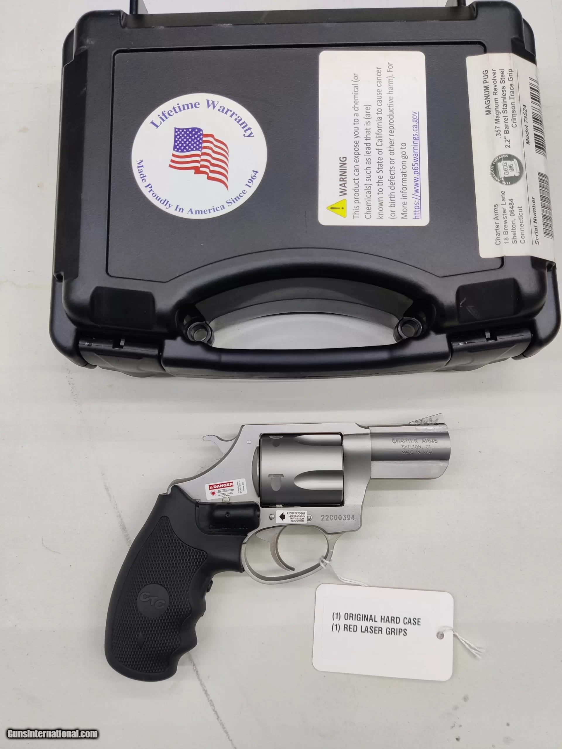 Description: Guns Listing ID: 1057117 Used Charter Arms Mag Pug .357 Magnum Revolver w/Laser Grips, Original BoxCharter Arms Mag Pug.357 Magnum5rd CapacityLaser GripsOriginal Box/Manuals/Gun LockBrushed Stainless SOLD Manufacturer: CHARTER ARMS Model: Mag Pug w/Laser Grips Caliber Info: .357 MAG Condition: Used - Non-Certified Barrels: 2.2 BARREL Finish: 1 |