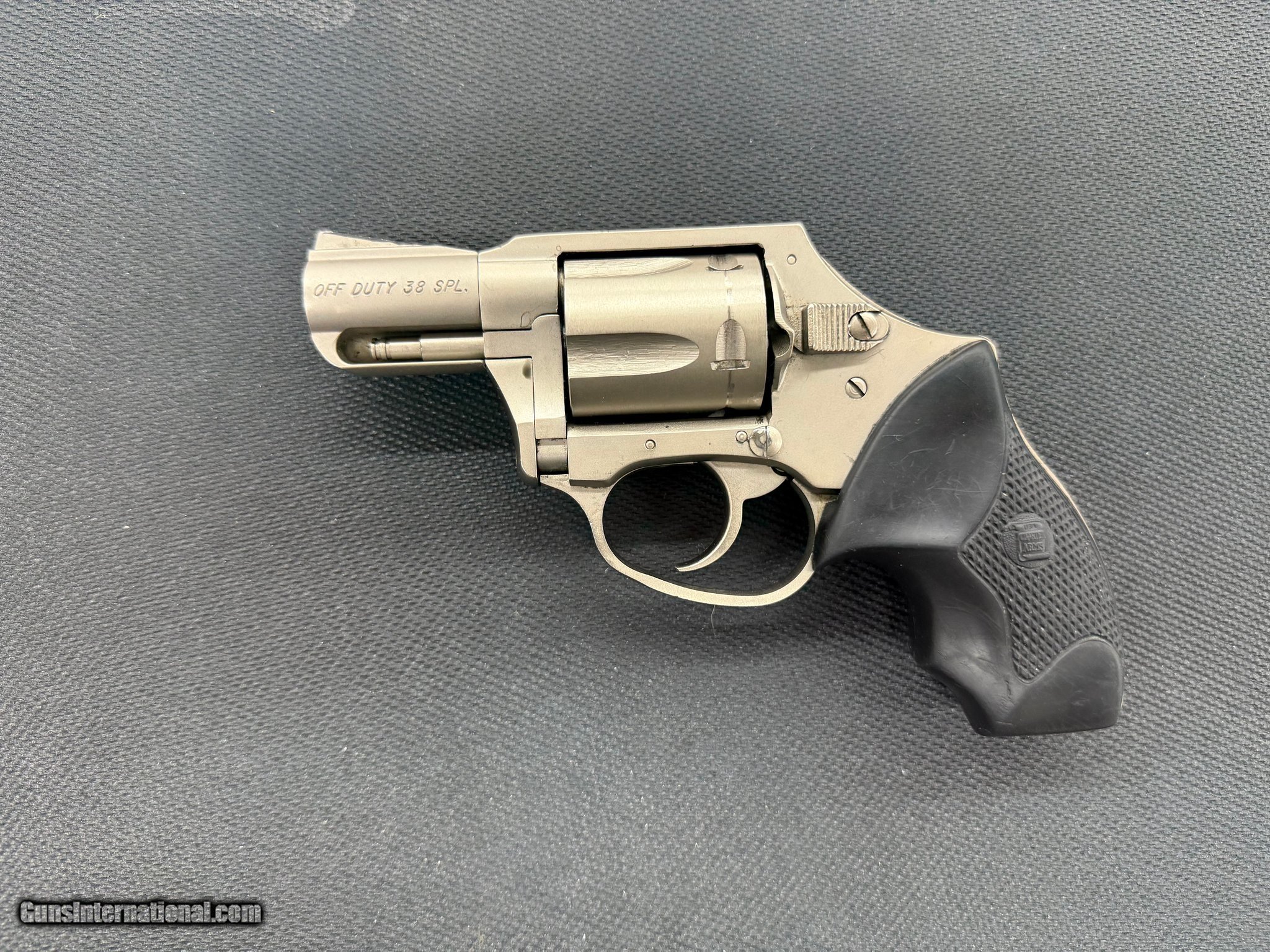 Description: Guns Listing ID: 477001 Charter Arms Off Duty 38 Special revolver in very good condition. Gun only, no box. SOLD Manufacturer: CHARTER ARMS Model: OFF DUTY Condition: Used - Non-Certified Barrels: 2 Gauge Info: .38 SPL Finish: stainless |
