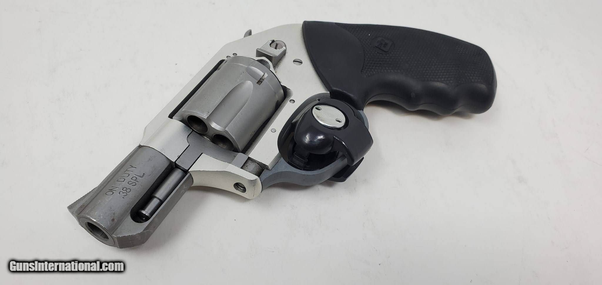 Description: Guns Listing ID: 502719 Revolver is in good condition, will show wear due regular use. Is sold bare firearm, no extra accessories SOLD Manufacturer: CHARTER ARMS Model: ON DUTY Caliber Info: .38 SPL Condition: Used - Non-Certified Barrels: 1 BARREL Finish: STAINLESS |