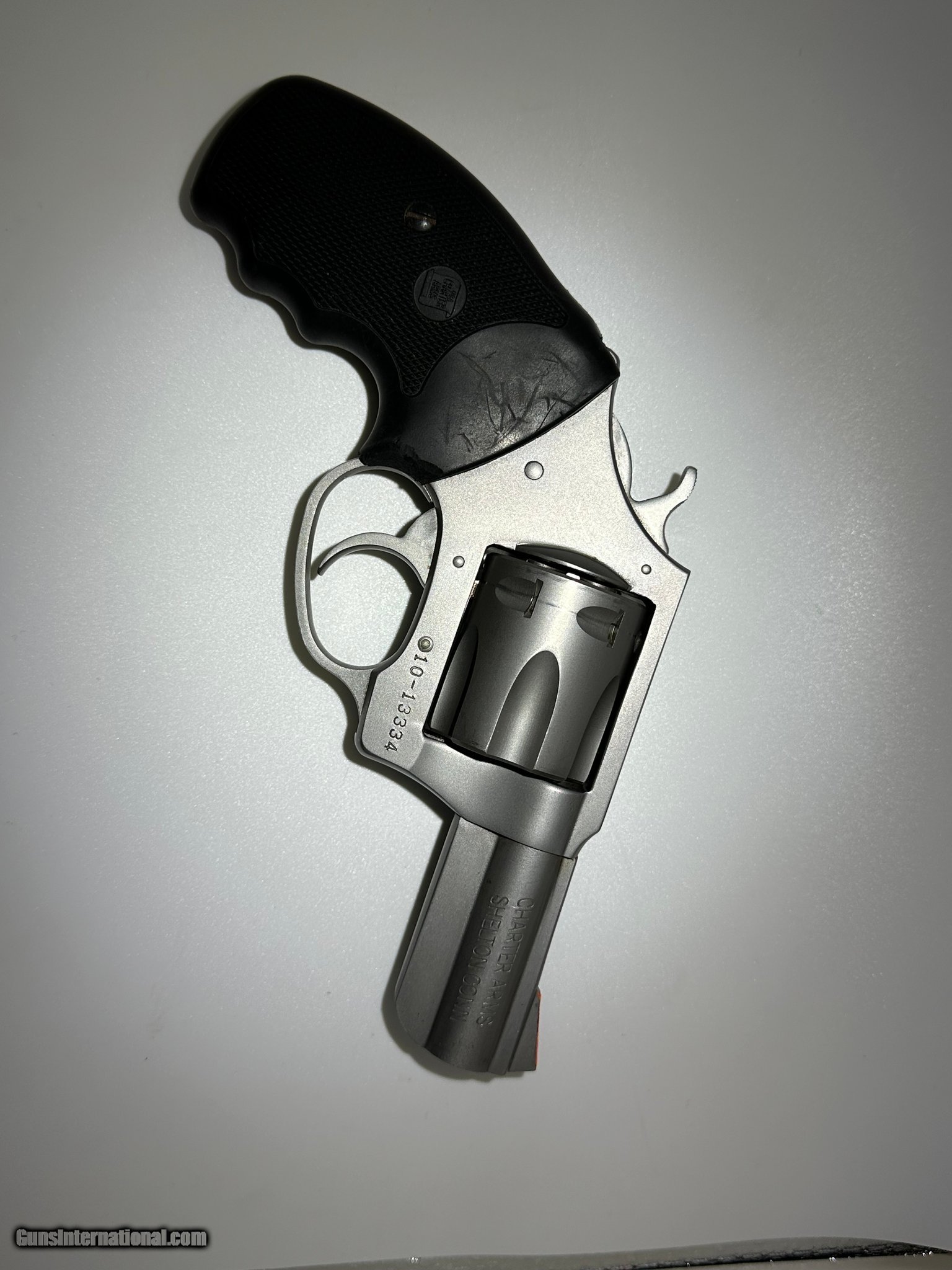 Description: Guns Listing ID: 1399603 Charter arms Patriot 327 federal magnum. Charter no longer makes this model and has gone down to 32 H&R. Grips have been reduced around the trigger guard . SOLD Manufacturer: CHARTER ARMS Model: PATRIOT Caliber Info: .327 FEDERAL MAG Condition: Used - Non-Certified Barrels: 2.5 BARREL Finish: STAINLESS |