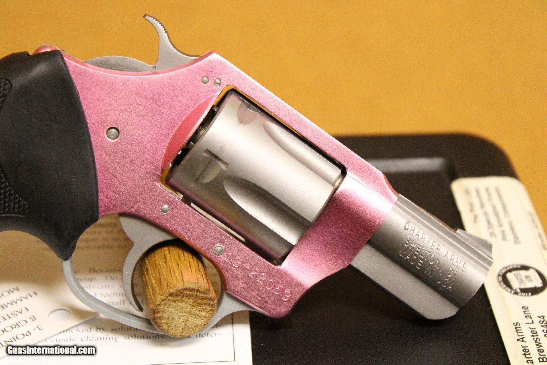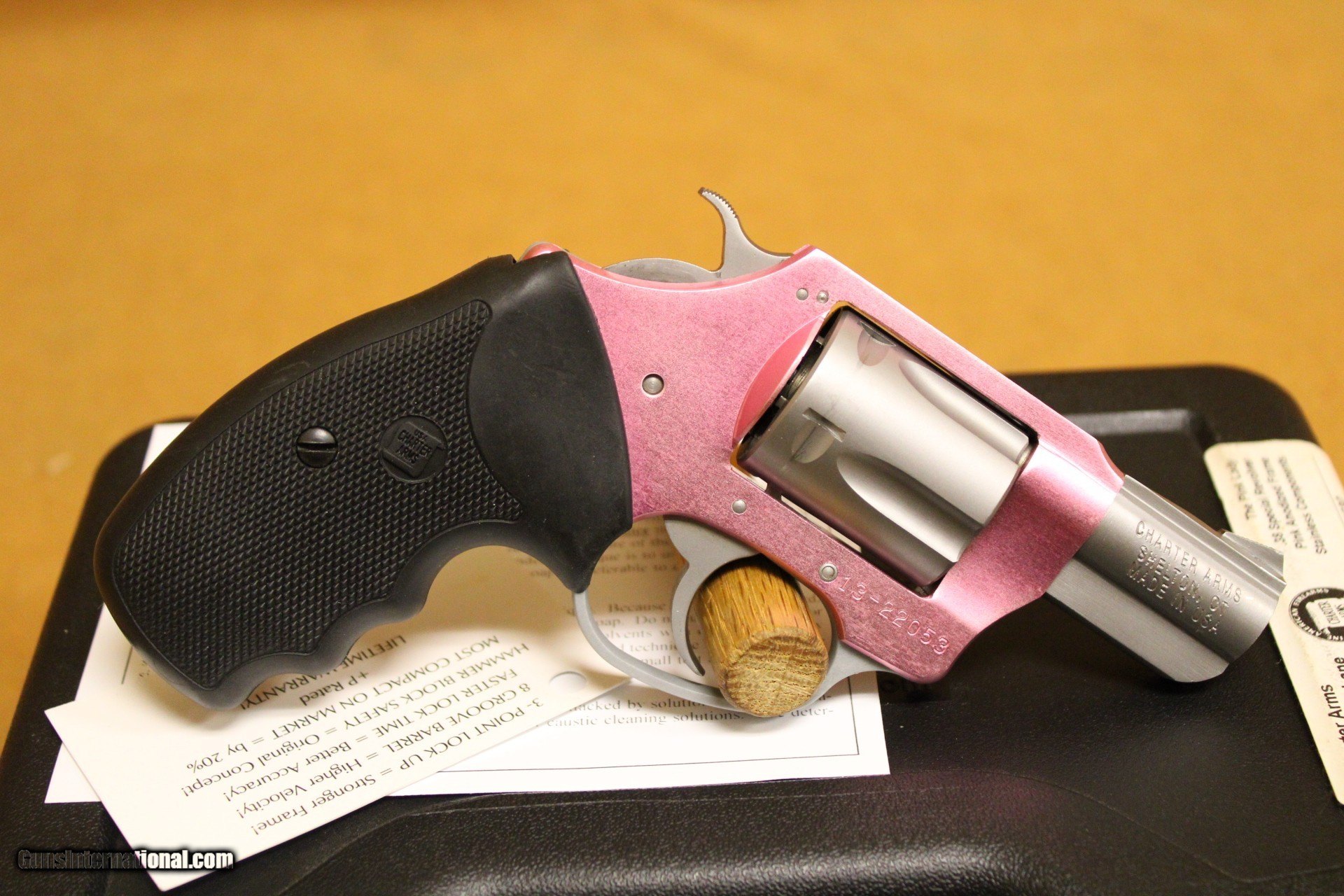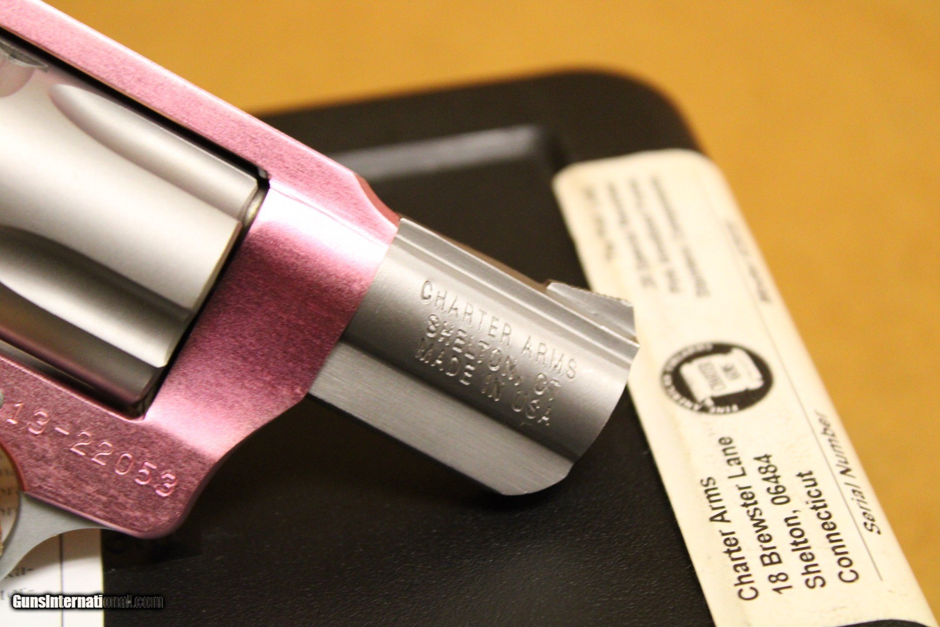 Description: Charter Arms' takes aim at the female market segment with a variation of their popular .38 Special Undercover Lite. The Pink Lady offers the same durability, power and lighter weight as its predecessor, but with a unique and attractive pink finish Tough, aircraft-grade aluminum allows the Pink Lady to offer rugged reliability and power, while weighing in at a mere 12 oz. This compact, ultra-lightweight, five-shot, .38 Special revolver features a 2” barrel, fixed sights, and traditional spurred hammer. Like all Charter revolvers, the Pink Lady has a three-point cylinder lock. This gun is used, but in great shape and would make a fantastic carry gun. It comes with its box. All items are also available for sale in our brick & mortar store and are subject to prior sale. Think long, think wrong. Payment On firearms, we typically only accept credit cards or money orders/cashier's checks.
