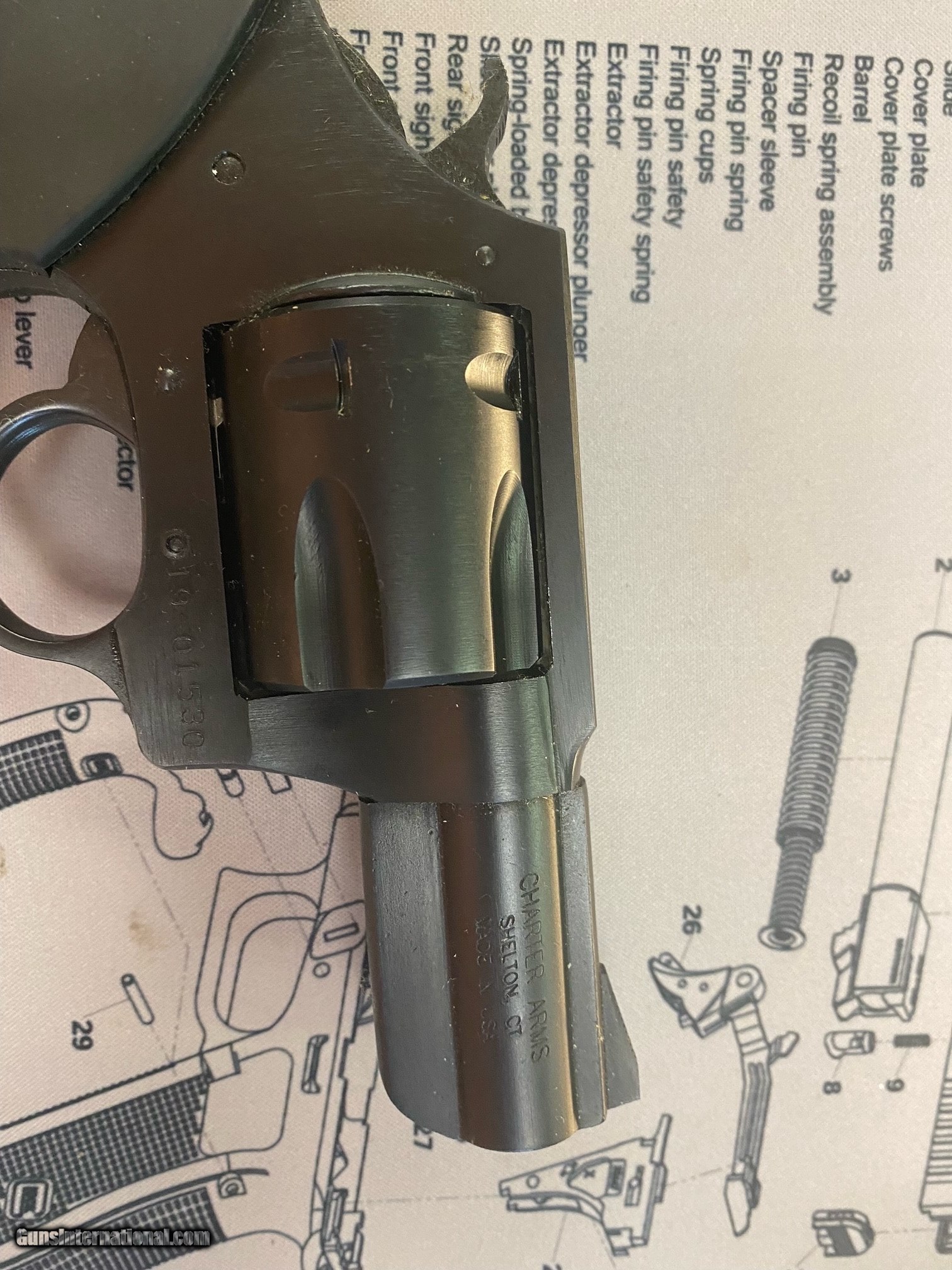 Description: Guns Listing ID: 502409 Charter‚‚s Pitbull features an unique design which provides a dual coil spring assembly located in the extractor which allows for easy cartridge insertion and retention in every chamber of the revolvers cylinder. This patented system allows the shooter ease of ejecting spent cartridges for immediate reloading. Charter Arms has taken the difficulty of rimless loading and ejection to the simplicity of the rimmed cartridge in the revolver industry. This model has a black nitride finish and a 2.3\" barrel SOLD Manufacturer: CHARTER ARMS Model: PITBULL Caliber Info: 40 S&W Condition: Used - Non-Certified Barrels: 2.25 barrel Finish: BLACK |