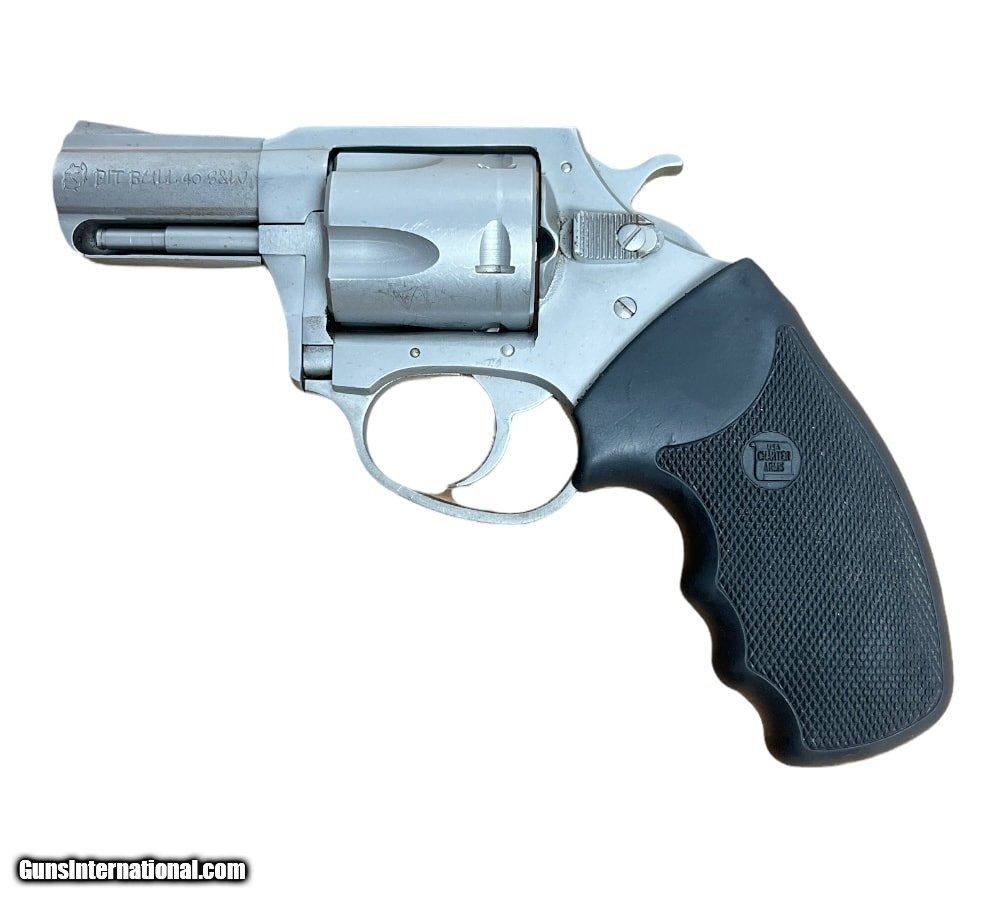 Description: Guns Listing ID: 515635 Manufacturer: Charter Arms Importer: Charter Arms Model: Pitbull Type: Handgun Action Type: Revolver Caliber / Gauge: .40 S&W Finish: Alloy Barrel Type: Single Grip Type: Rubber Barrel Length: 2.5 Magazine Capacity: 5 Case included: no Condition: Used SOLD Manufacturer: CHARTER ARMS Model: Pitbull Caliber Info: .40 S&W Condition: Used - Non-Certified Barrels: 2.5 BARREL Finish: ALLOY |