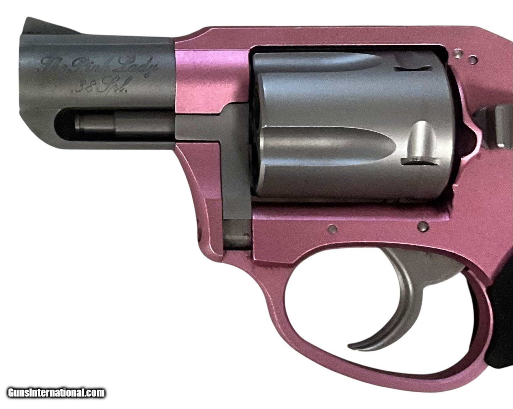 Description: Guns Listing ID: 590801 Manufacturer: Charter Arms Importer: Charter Arms Model: The Pink Lady Type: Handgun Action Type: Revolver Caliber / Gauge: .38 Special Finish: Pink Barrel Type: Single Grip Type: Rubber Barrel Length: 2\" Magazine Capacity: 5 Magazine Quantity: 1 Case Type: None Condition: Used Manufacturer: CHARTER ARMS Model: The Pink Lady Caliber Info: .38 SPL Condition: Used - Non-Certified Barrels: 2" BARREL Action: REVOLVER Finish: Pink Price: $339.99 Contact Seller |