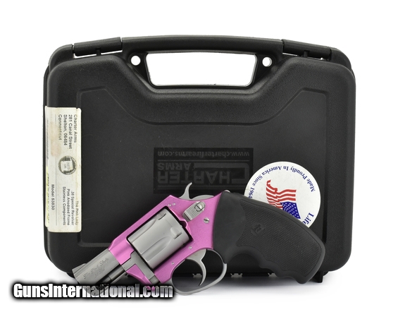 Description: Charter Pink Lady .38 Special caliber revolver. Fancy ladies snubnose with pink frame. Excellent condition with box.