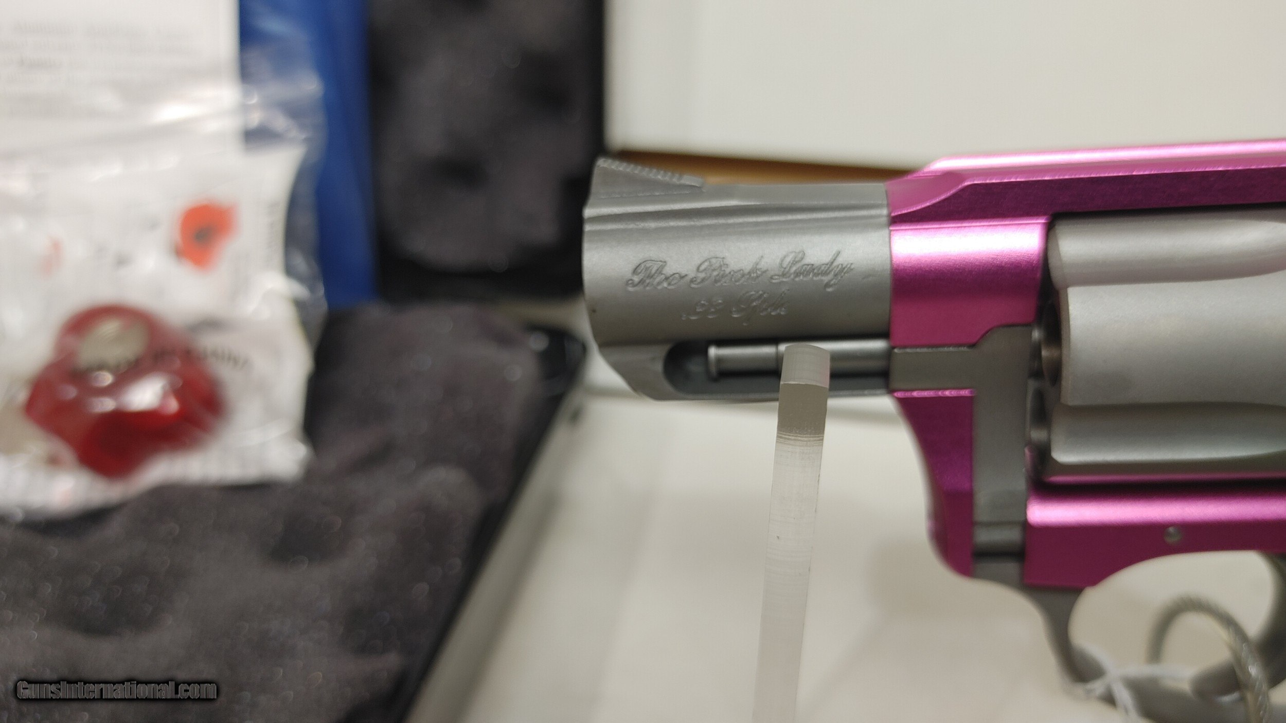 Description: new CHT PINKLADY 38SP DA 2ALUM/PNK new in hard plastic case (CALIBER:38SP); (MAG CAPACITY:5); (MODEL SERIES:PINK LADY|UNDERCOVER LITE); (CAPACITY:5); (FINISH:ALUMINUM (LOOKS LIKE STAINLESS STEEL) AND PINK); (STOCK:BLACK RUBBER GRIPS WITH FINGER GROOVES); (SIGHTS:FIXED); (OVERALL LENGTH:6.75); (FEATURES:SPURRED HAMMER/ SHROUDED EJECTOR ROD); (GUN TYPE:REVOLVER: DOUBLE ACTION); (ACTION:DOUBLE ACTION); (BARREL LENGTH:2); (DEPT:HANDGUN) Buyer pays shipping Millers Gun Center Located in New Castle, Delaware "Home of TAX-Free shopping" No Credit Card Fees SOLD Serial Number: 21L19804 |