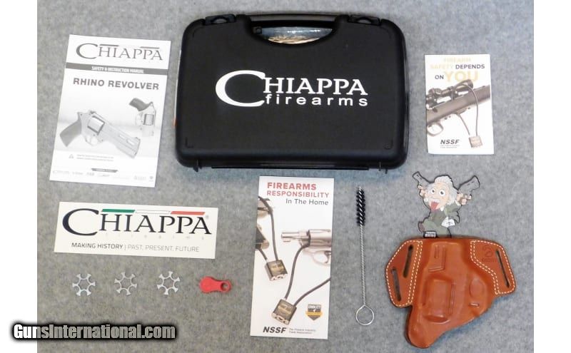 Description: Chiappa Firearms ~ Rhino 200DS ~ Chambered in .357 Magnum. Is a 21st century take on a double action revolver with a 6 shot capacity cylinder, and optimized for the lowest possible bore axis. Features a 2" barrel paired with a rear iron sight and front fiberoptic sight for easy aim. Aluminum alloy frame is anodized black, steel cylinder and barrel are blued, and black rubber grip completes a subdued aesthetic while providing comfort to the shooter. Comes with factory hard case along with documentation, holster, and three moon clips. .357 Magnum SOLD Chambers: .357 Magnum. Metal Condition: Very good condition. Bore Condition: Very good condition. Barrels: 2" inches. Triggers: 4.5 pounds. Weight: 1 POUND Sights: "Rear iron sight, front Fiberoptic sight. Item Location: Acworth, GA |