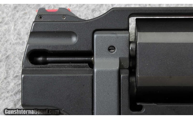 Description: T The Rhino is a very innovative and unconventional design. The Rhino fires from the bottom of the cylinder rather than the top. This reduces muzzle rise and recoil felt by lowering the axis of the bore almost to the palm of the shooters hand. A cocked indicator is clearly visible to indicate the internal hammer status. The hexagonal cylinder keeps the revolver's width to a minimum. Manufactured in Italy 2012. .357 Magnum SOLD Metal Condition: Excellent with some scratches Bore Condition: Excellent Barrels: 2 inch barrel Triggers: Double action Weight: 26 oz. Sights: Square notch rear sight with fiber optic front Item Location: Lehi, UT |