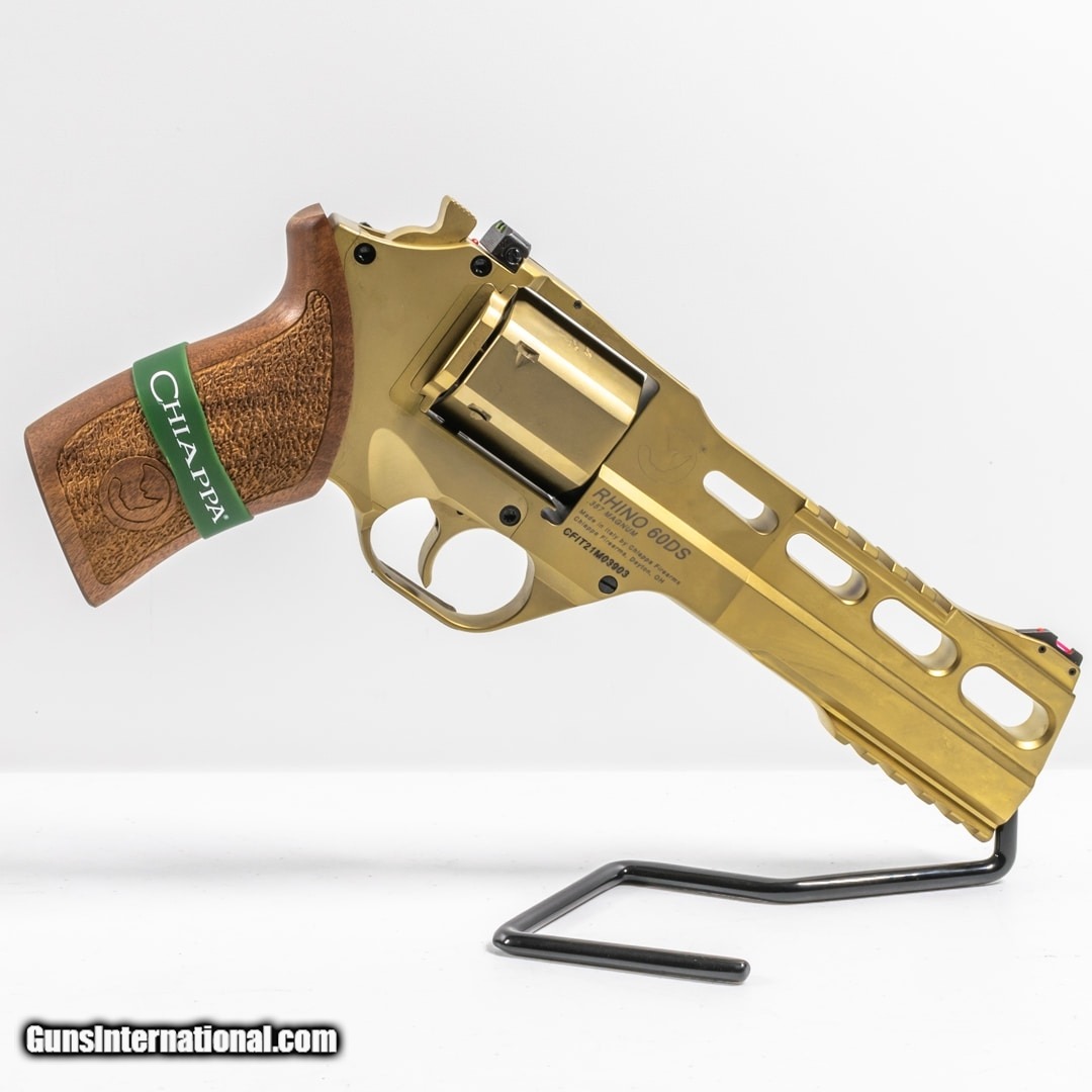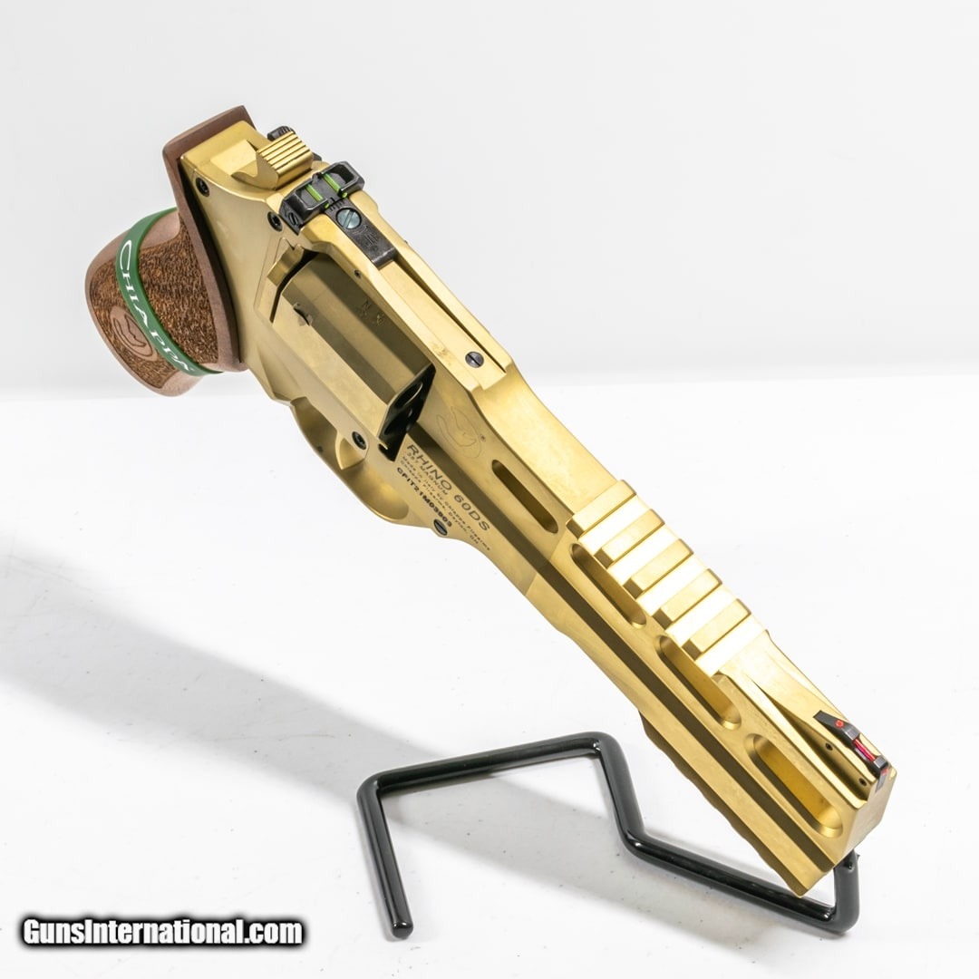 Description: Guns Listing ID: 924694 Manufacturer: Chiappa Firearms Model: Rhino 60DS Condition: Very Good Caliber: .357 Magnum Action: DA/SA Barrel Length: 6” Capacity: 6 Finish: Gold PVD Finish frame & barrel Inventory: (3) Moon clips, original hard plastic case, instruction manual, cleaning brush, trigger lock. -Please be aware that we have not test fired this gun. Unless otherwise stated, expect this firearm to fire and function safely. -All sales are final. Any discrepancies between the gun and our description should be communicated to us prior to the transfer. -Returns will not be accepted after the transfer process has been submitted or completed. SOLD Manufacturer: CHIAPPA FIREARMS Model: RHINO 60DS Caliber Info: .357 MAG Condition: Used - Non-Certified Barrels: 6 BARREL |