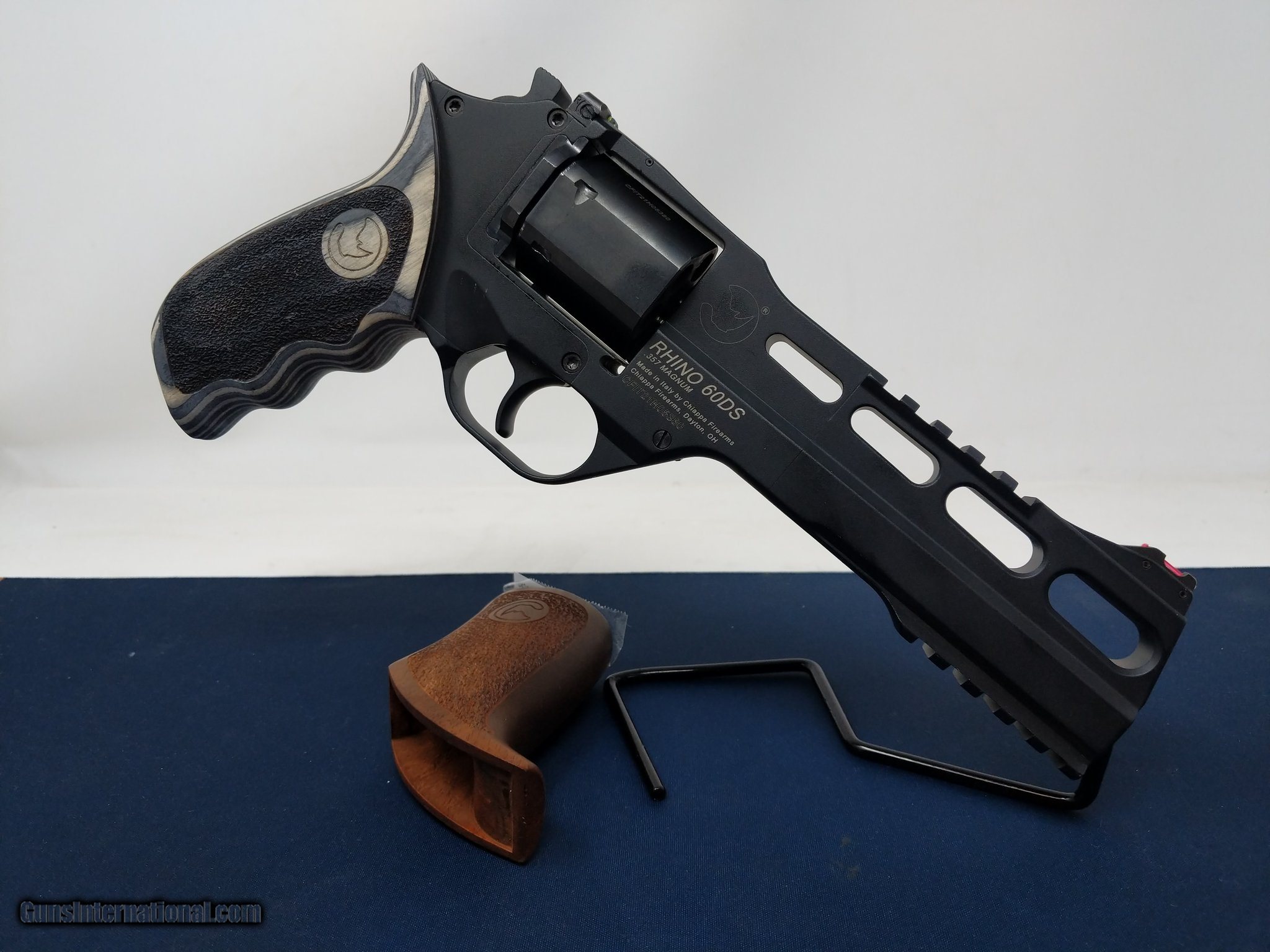 Description: Guns Listing ID: 1261037 Great condition Chiappa Rhino 60DS! Absolutely beautiful Italian made 6 shot revolver with top and bottom pickatinny rails and and extra wooden grip. New engineering makes this one of the smoothest firing revolvers on the market. Nice addition to any collection. 0424VZZ SOLD Manufacturer: CHIAPPA FIREARMS Model: RHINO 60DS Caliber Info: .357 MAG Condition: Used - Non-Certified Barrels: 6 BARREL Finish: BLACK |