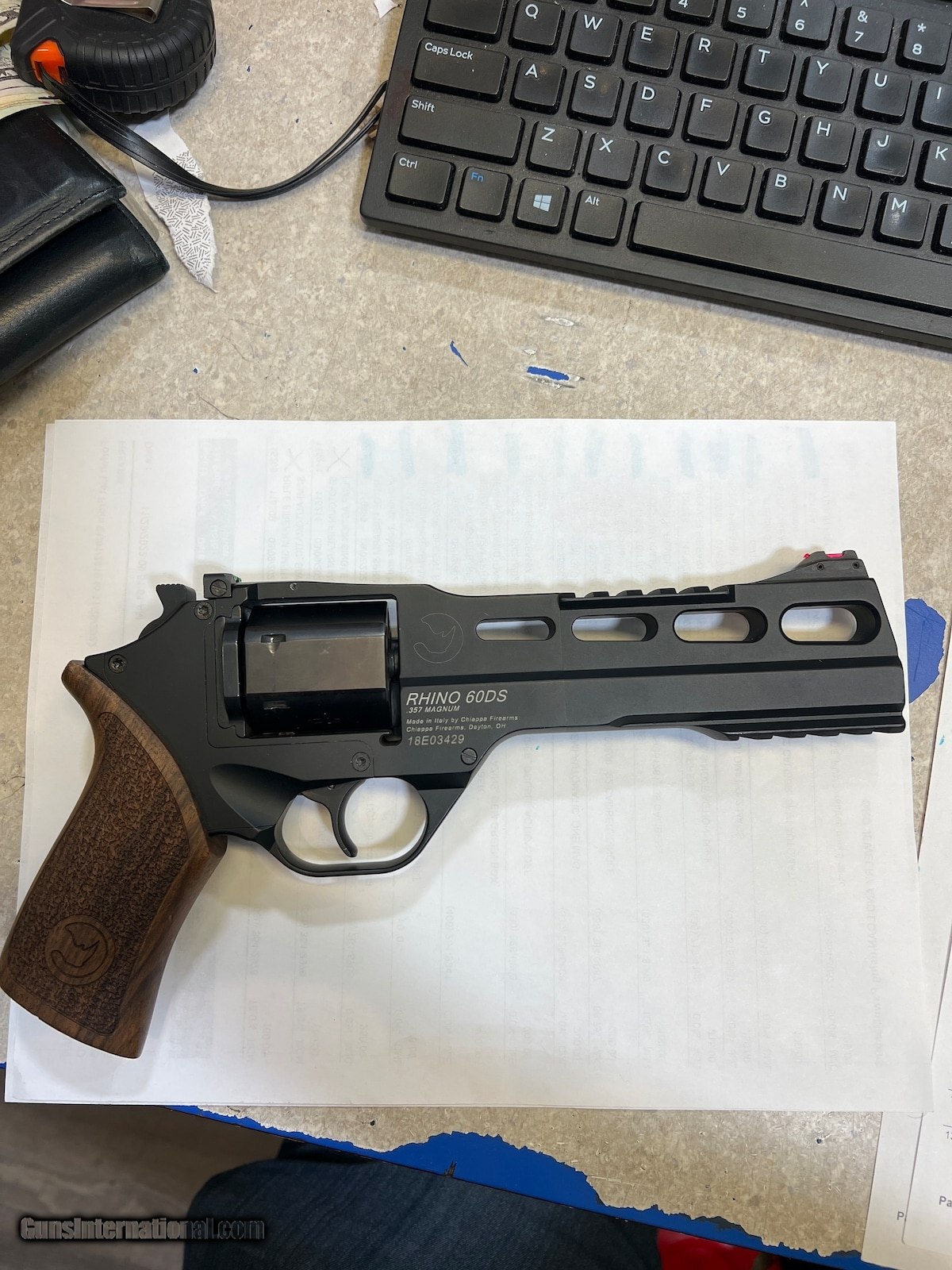 Description: Guns Listing ID: 672162 Rhino 60DS .357 Magnum Hi Viz Sights, wood grip SOLD Manufacturer: CHIAPPA FIREARMS Model: RHINO 60DS Caliber Info: .357 MAG Condition: Used - Non-Certified Barrels: 6 BARREL Finish: BLACK /W WOOD STOCK |