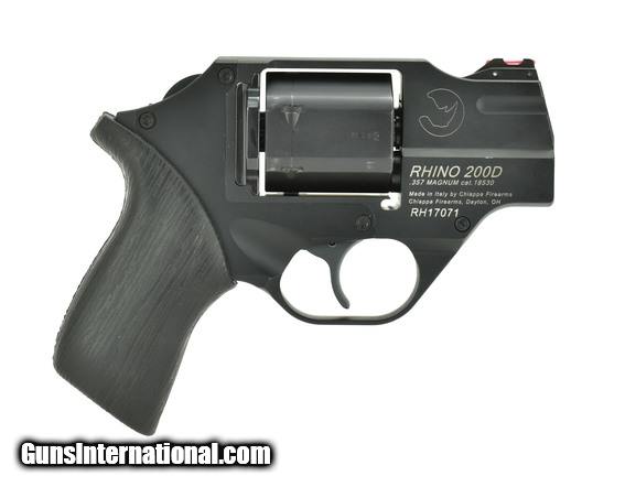 Description: Chiappa Rhino 200D .357 Magnum caliber revolver. Snub model with red fiber optic front sight with box. Excellent condition.