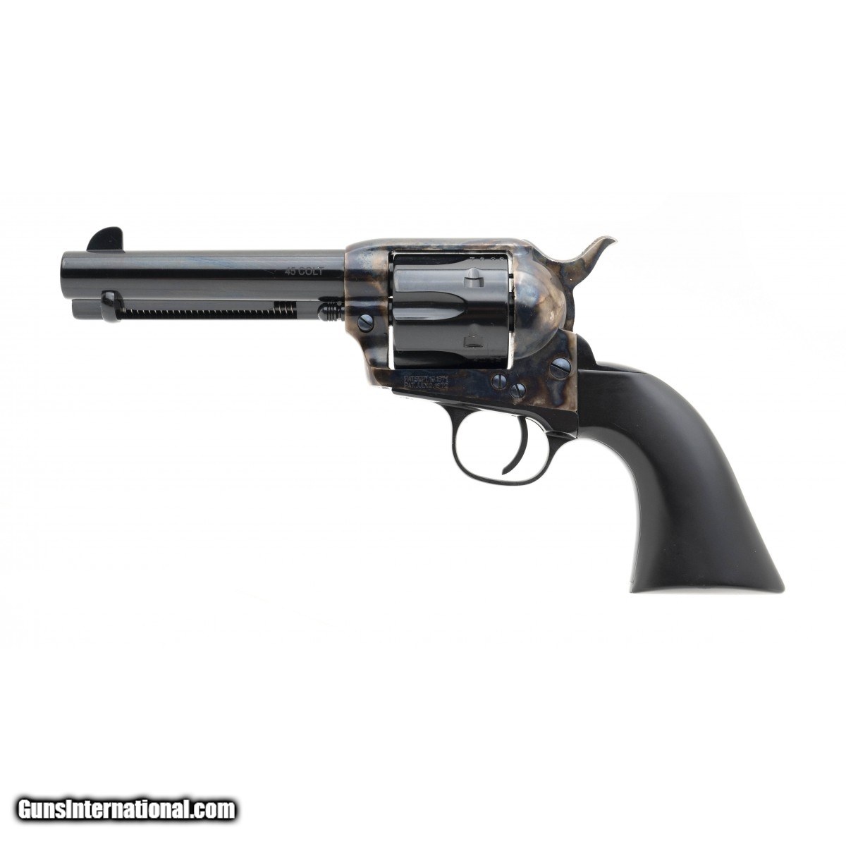 ""Holy Smoker"" limited edition single action revolver with color case hardened reciever, blued 4.75"" barrel, and matte black grips featuring a gold cross. NEW. UPC:844234128662