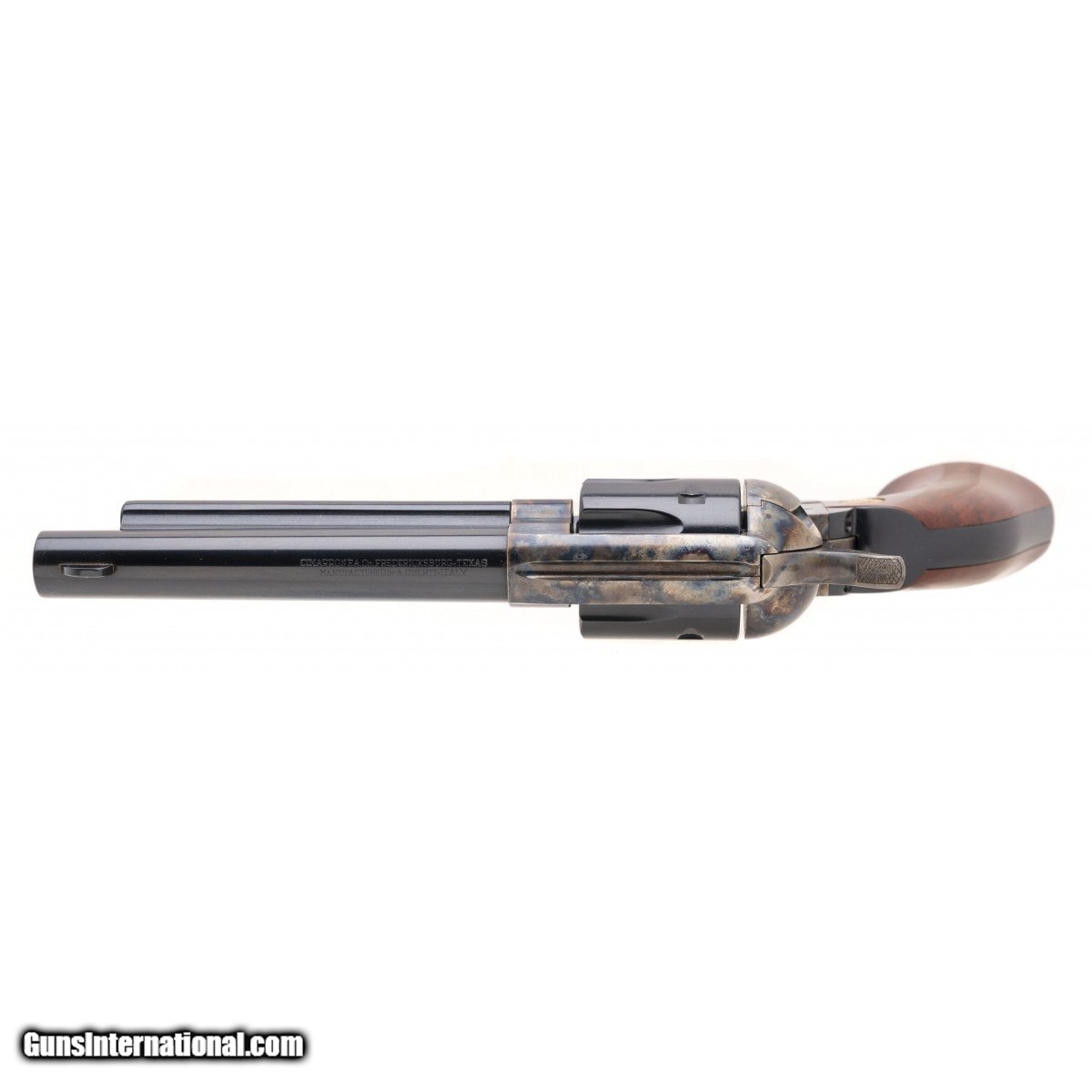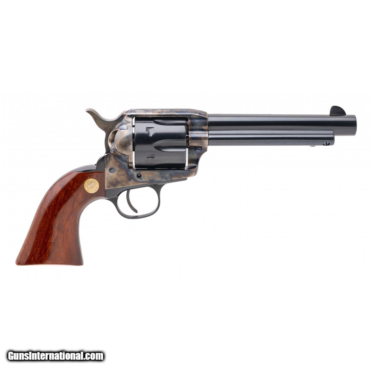Description: " SN: P56865. Modern production .357 Mag with a 5.5"" barrel. Italian made sixgun with blue/case colors and wood grips. Excellent condition overall. Consignment. SOLD |