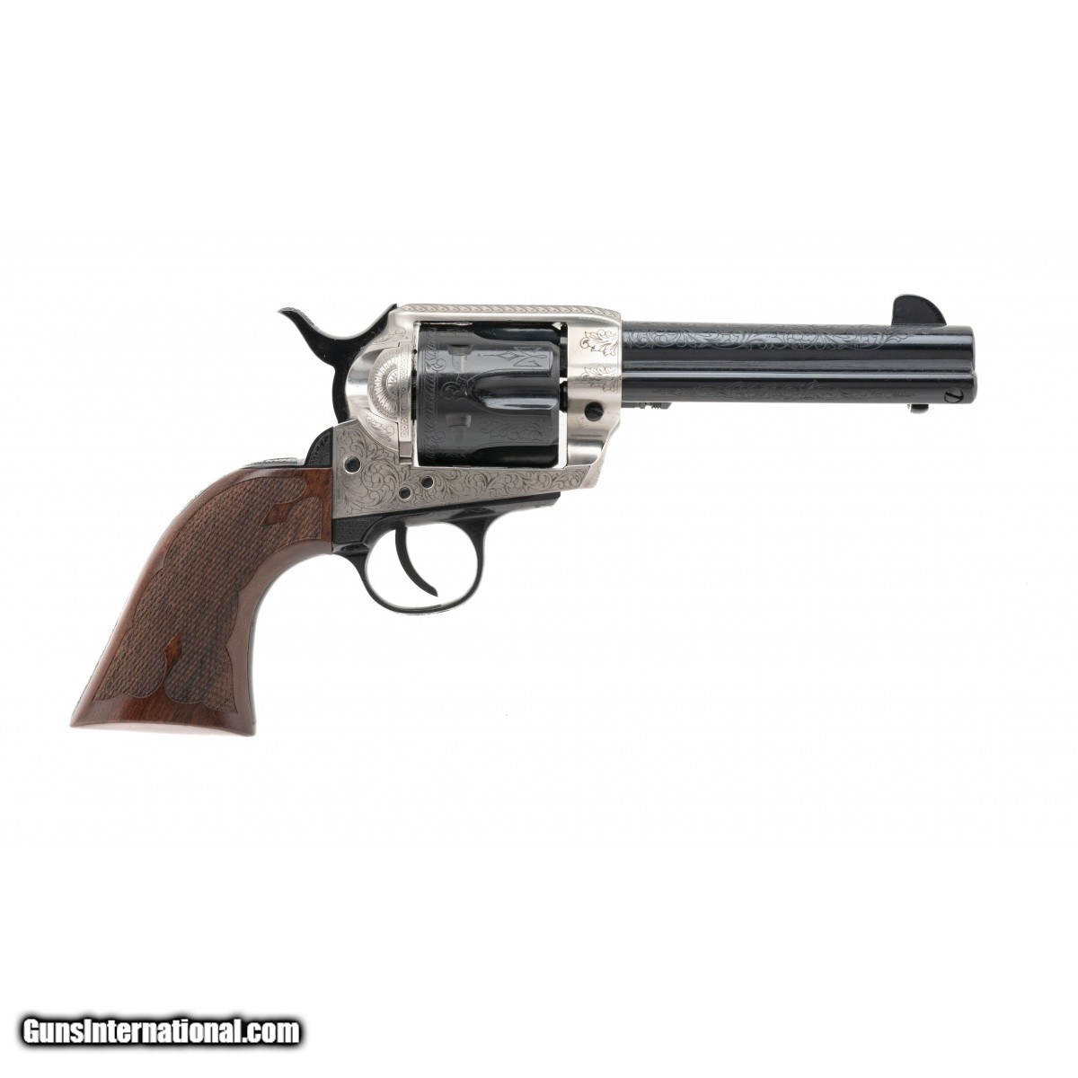 Single action revolver with a 4.75"" barrel, wood grips and, laser engraving on the barrel and frame. NEW. UPC:844234129515.