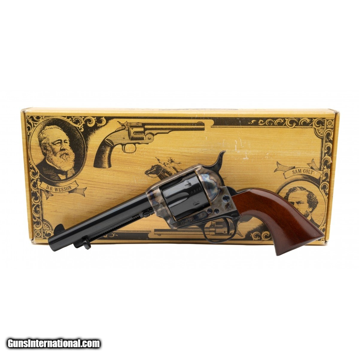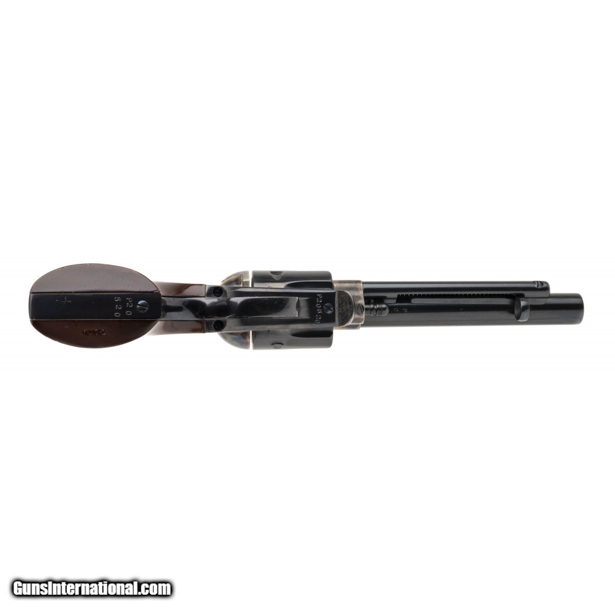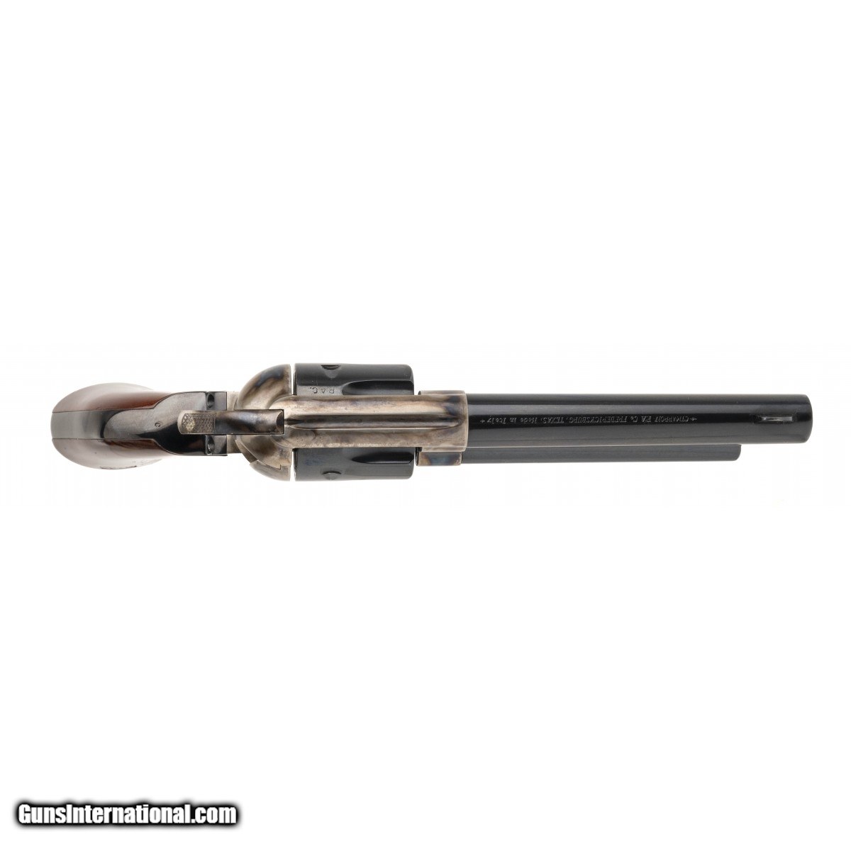 Description: " SN: P20520. Modern production Single action revolver made by Uberti. 5½"" Barrel chambered in .45 Long Colt. Firearm appears to be in like new condition. Pristine wooden grips, case hardened receiver and blued barrel. Comes with original box. Austin Location SOLD |
