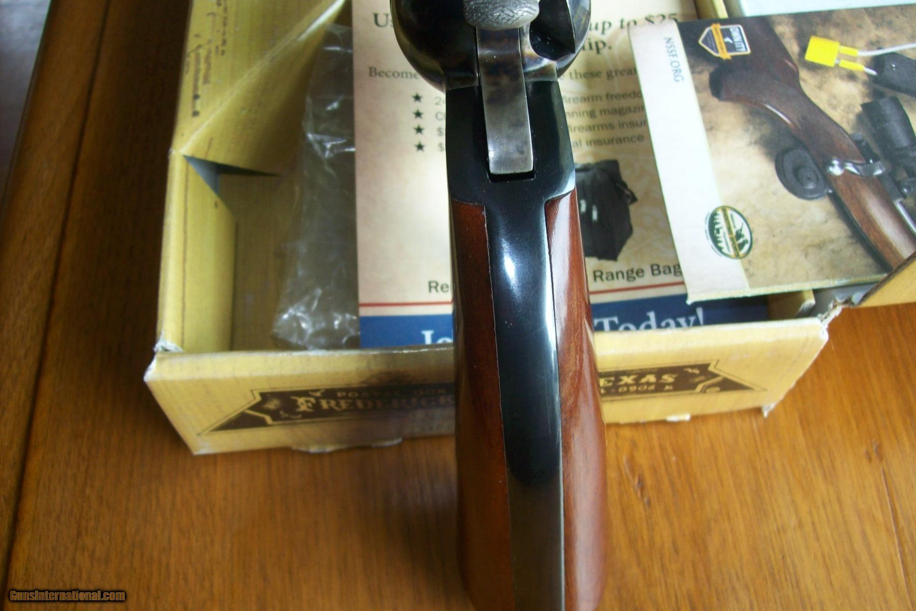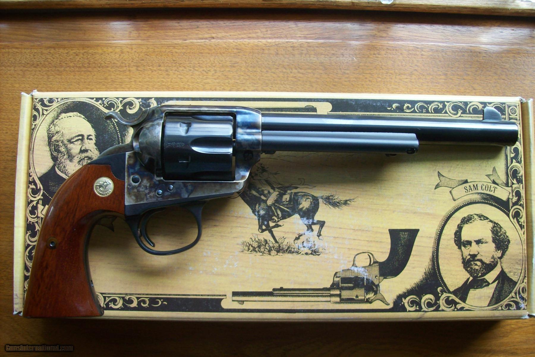 Description: excellent cimarron bisley by uberti in 44 special 7-1/2 inch barrel in original box with all paper work. revolver in nearly new condition 98% two tiny spots on grip frame and small spot on edge of barrel muzzle. four boxes of cowboy loads shot in this gun. no sales to calif,new york,mass. etc. my dealer to your dealer. SOLD |