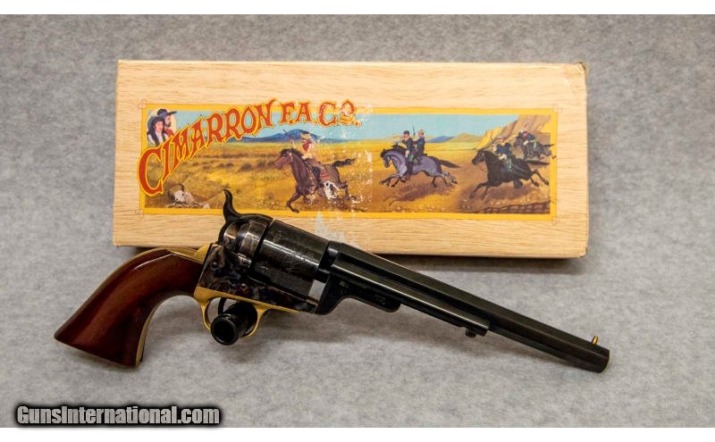 Description: Cimarron Model 1851 Navy Richards-Mason, chambered in .38 Colt/S&W Spl. Features include: 7 1/2 in. barrel, patterned after the original Richards-Mason 1851 Navy Conversion, available in standard blue finish. Mfg. by Uberti. .38 S&W Special SOLD Chambers: .38 Colt/S&W Spl Metal Condition: Excellent Wood Condition: Excellent Bore Condition: Excellent Barrels: 7 1/2' Sights: Iron Item Location: Fort Mill, SC |