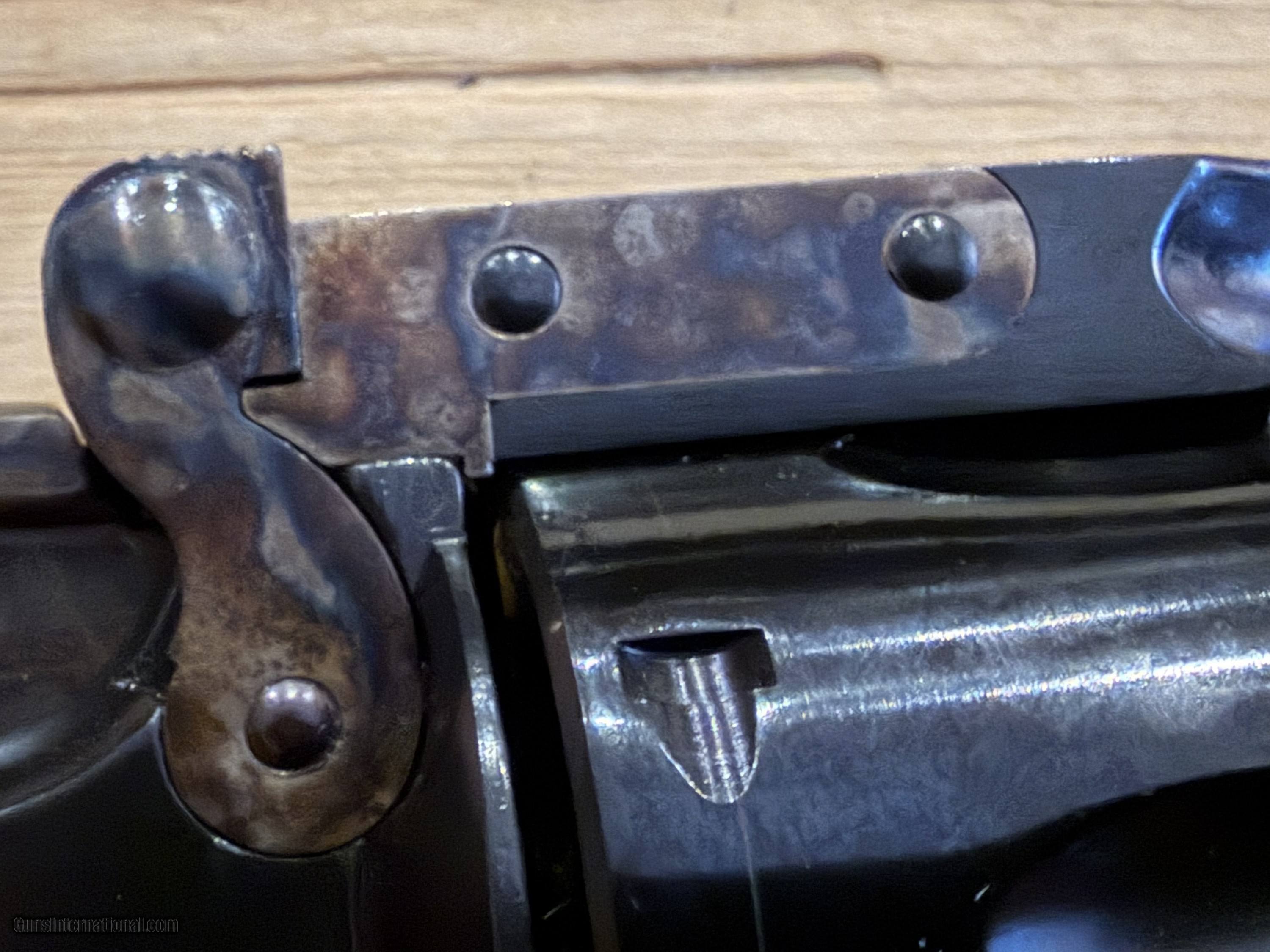 Description: FOR SALE: One Cimarron 1875 Schofield 45 Colt 7" Revolver Condition: New From Cimarron Arms Manufacturer: Uberti USA Arms Type: Revolver: Single Action Model Series: No. 3 Schofield Model Specific: No. 3 Schofield Caliber/Gauge: 45 Colt Capacity: 6 Barrel Length: 7 in. Product Details: Frame Finish: Blue Front Sight: Fixed Blade Rear Sight: Fixed Grips: Walnut 2-Piece Features: Made by Uberti, Italy Weight: 42.4 oz. Finish: Blue Firing System: External Hammer Frame Material: Steel Trigger Pull Average: 4.50 Barrel Configuration: Single Barrel Twist: 1-16 Rifled Barrel: Yes Major George W. Schofield of the 10th Cavalry and an army ordinance officer, designed this revolver as an improvement over Smith & Wesson's Model No. 3 "American" model. The Model No. 3 Schofield was produced by S&W from 1875-1877, the U.S. Army ordered nearly 8,000 in the proprietary .45 Schofield cartridge and many saw service by the 4th Cavalry in the Geronimo campaign and by the buffalo soldiers of the 9th and 10th Cavalry. Schofields were also put to work by the notorious James-Younger gang, U.S. Marshal Bill Tilghman and Custer's chief of scouts "Lonesome Charley" Reynolds. Another roughly 1,000 guns were sold on the civilian market. Favored by many horse soldiers for its top-break, rapid ejection system, many considered it superior to the 1873 Colt Single Action for mounted work. In the 1880s, New York gun dealer Schuyler, Hartley Graham bought surplus Schofields, cut the barrels from 7 to 5 inches, and sold many of them to Wells Fargo & Company. The .45 Colt chambered Cimarron Schofields are also capable of chambering the .45 Schofield cartridge. Whether you are into the real Old West, or the "reel" West like the Schofield Kid from Clint Eastwood's Unforgiven or gunman Charlie Prince from Russell Crowe's 3:10 To Yuma, you'll enjoy owning a Cimarron Schofield! Handgun Caliber: .45 Manufacturer: Uberti Model: No. 3 Schofield Barrel Length: 7 Condition: New Metal Condition: Excellent Wood Condition: Excellent Bore Condition: New Finish: Blue / Case Hardened Sights: Fixed Price: $1,175.00 Shipping: $30.00 Buy Now Pay with