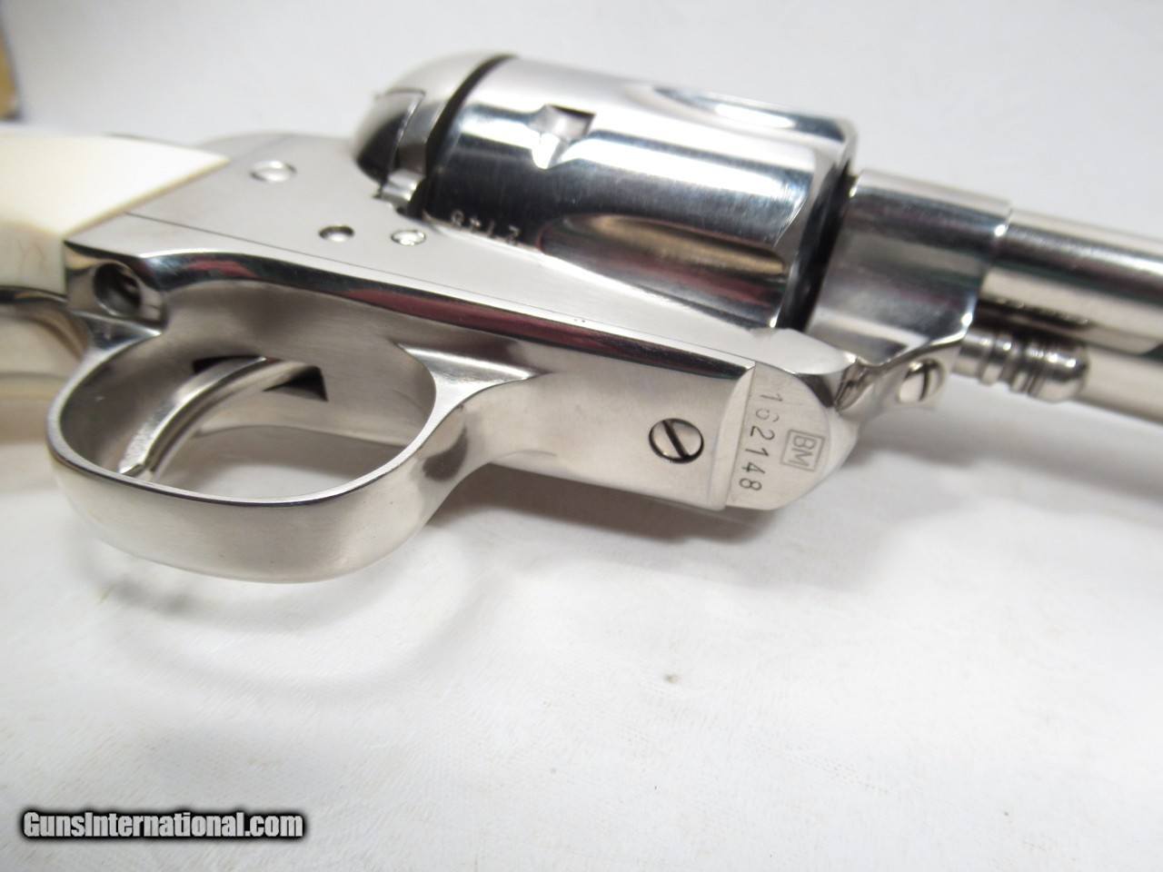 Description: SOLD--Cimarron Arms Single Action Revolver; Serial No. 162148; Caliber 32-20 with 7 ½” Barrel; Nickel Finish; Imitation Ivory Grips with Steer Head Motif; Original Box; Has been fired; See All Photos for Condition; No Texts. Call or Email Only; PERSONAL PROPERTY of Harold Wieser; Price: $475 + $45 S&H Via FedEx Express; Price includes insured shipping; return policy: three days inspection from the date the item is received; full refund of shipping both ways ONLY IF THE ITEM IS MISREPRESENTED. SOLD Manufacturer: Cimarron Model: Single Action Serial Number: 162148 |
