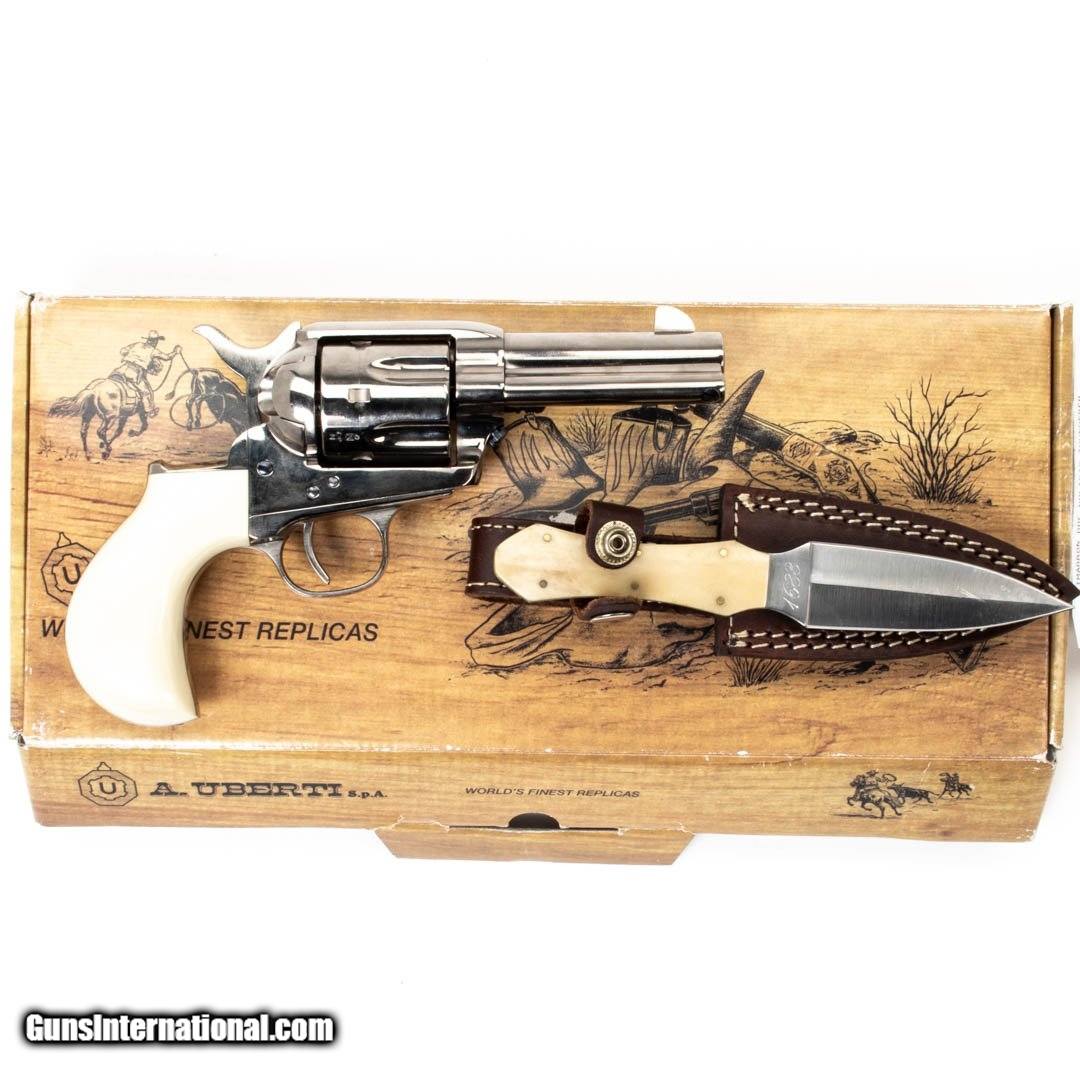Description: Guns Listing ID: 542129 This Cimarron revolver comes with the original box, owner‚s manual, a fixed front sight and a push dagger is included. Get the best bang for your buck when you get a Certified Used Firearm . When you see the Certified Used stamp on any of our firearms, you can be confident that you’re getting exactly what you want – a gun only in very good to excellent condition and held to the highest quality standard. All Certified Used Guns come with a ‘no questions asked’ return policy . PLUS, ALL CERTIFIED USED GUNS SHIP FREE! SOLD Manufacturer: CIMARRON Model: DOC HOLLIDAY THUNDERER Caliber Info: .45 LC Condition: Used - Certified Barrels: 3.50 BARREL Action: REVOLVER Finish: nickel Weight: 2.2 |