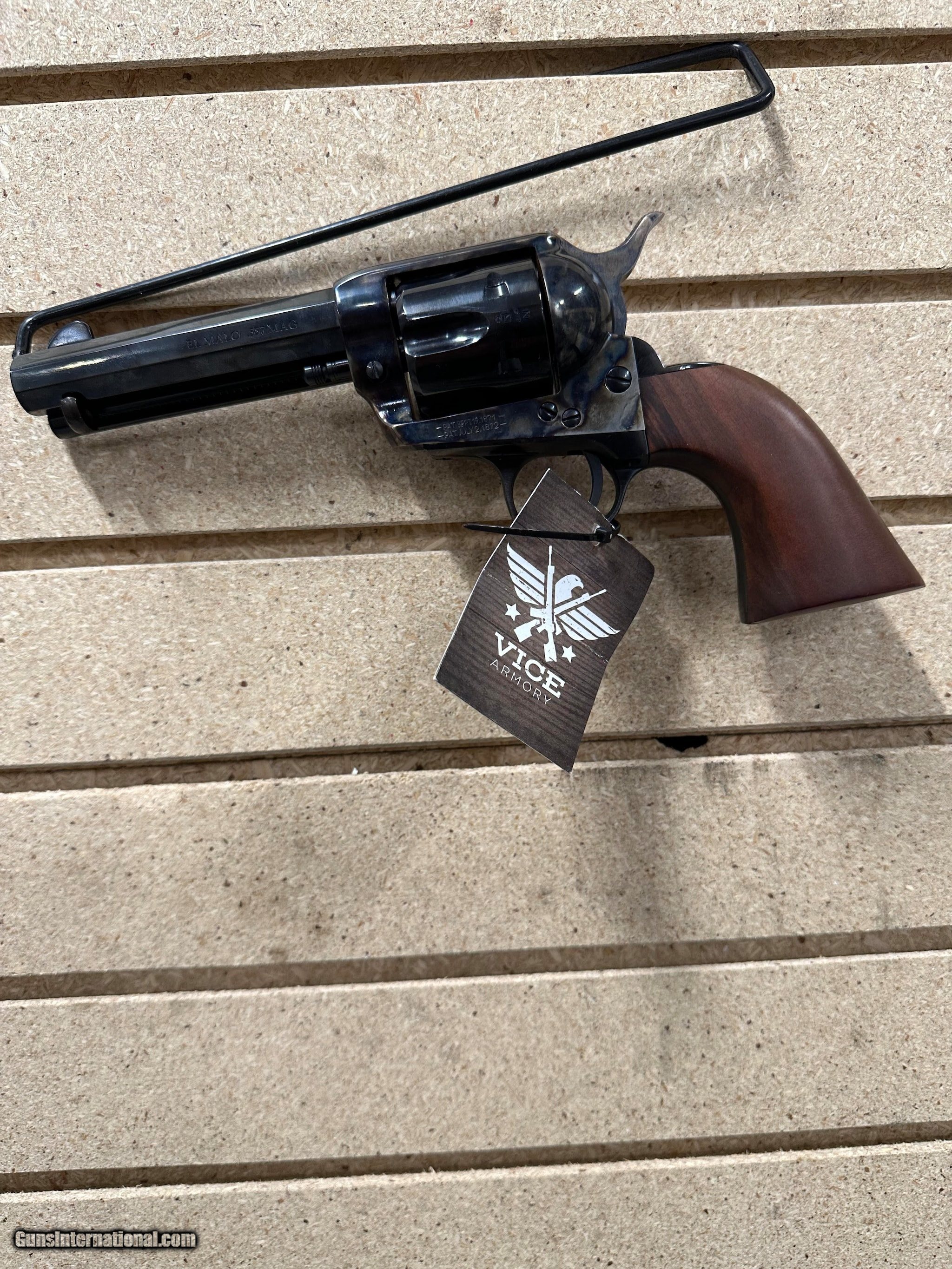 Description: Guns Listing ID: 751156 CIMARRON, EL MALO REVOLVER, SINGLE ACTION, 357 MAGNUM/38 SPECIAL, 4.75\" BARREL, STEEL, CASE HARDENED FINISH, WALNUT GRIPS, 6 ROUNDS SOLD Manufacturer: CIMARRON Model: EL MALO Caliber Info: .357 MAG Condition: Used - Non-Certified Barrels: 4.75 BARREL Finish: STEEL/WOOD GRIPS |