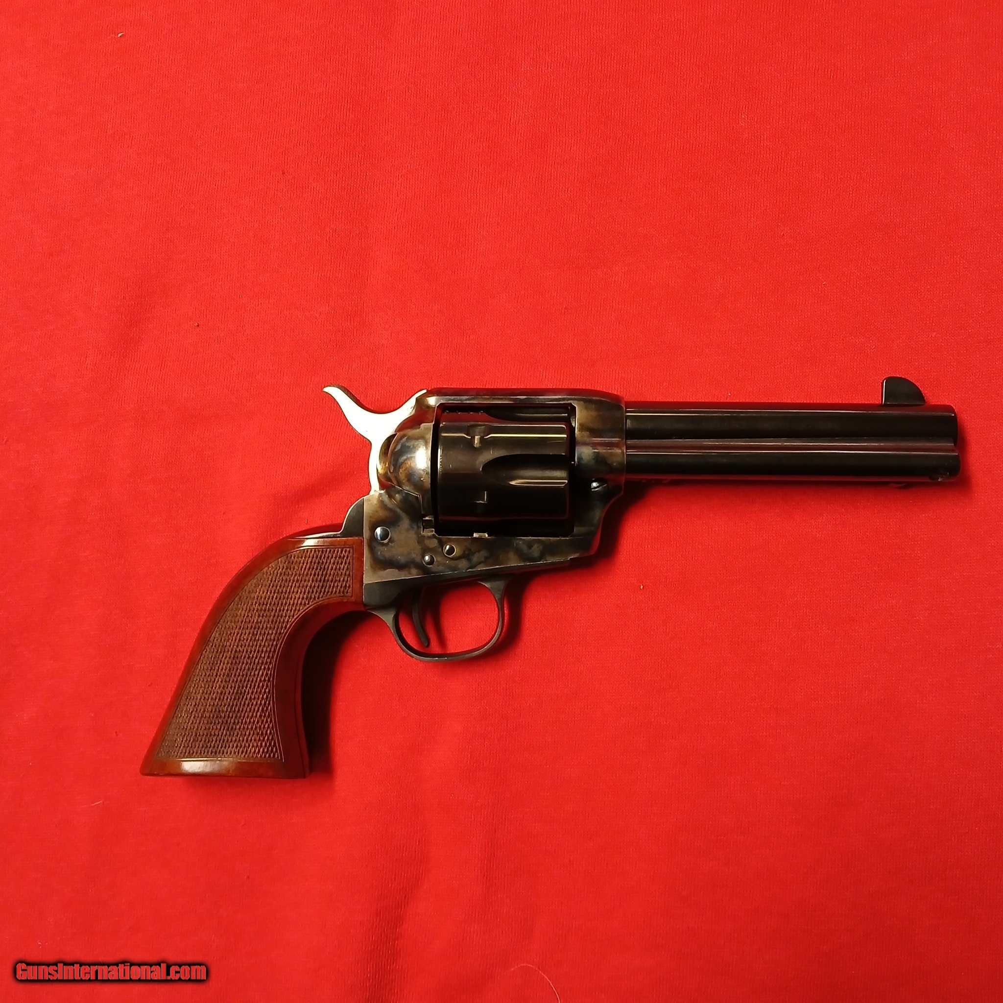 Description: Guns Listing ID: 462226 PRE-OWNED REVOLVER SINGLE ACTION MODEL ER4100 45 LC NICK NAME EVIL ROY, BARREL IS 4.75\" AND HAS RED WOOD HANDLES AND HAS NEVER BEEN SHOT. SOLD Manufacturer: CIMARRON Model: ER4100 Condition: Used - Non-Certified Barrels: 4.75 Gauge Info: .45 LC Finish: blue steel |