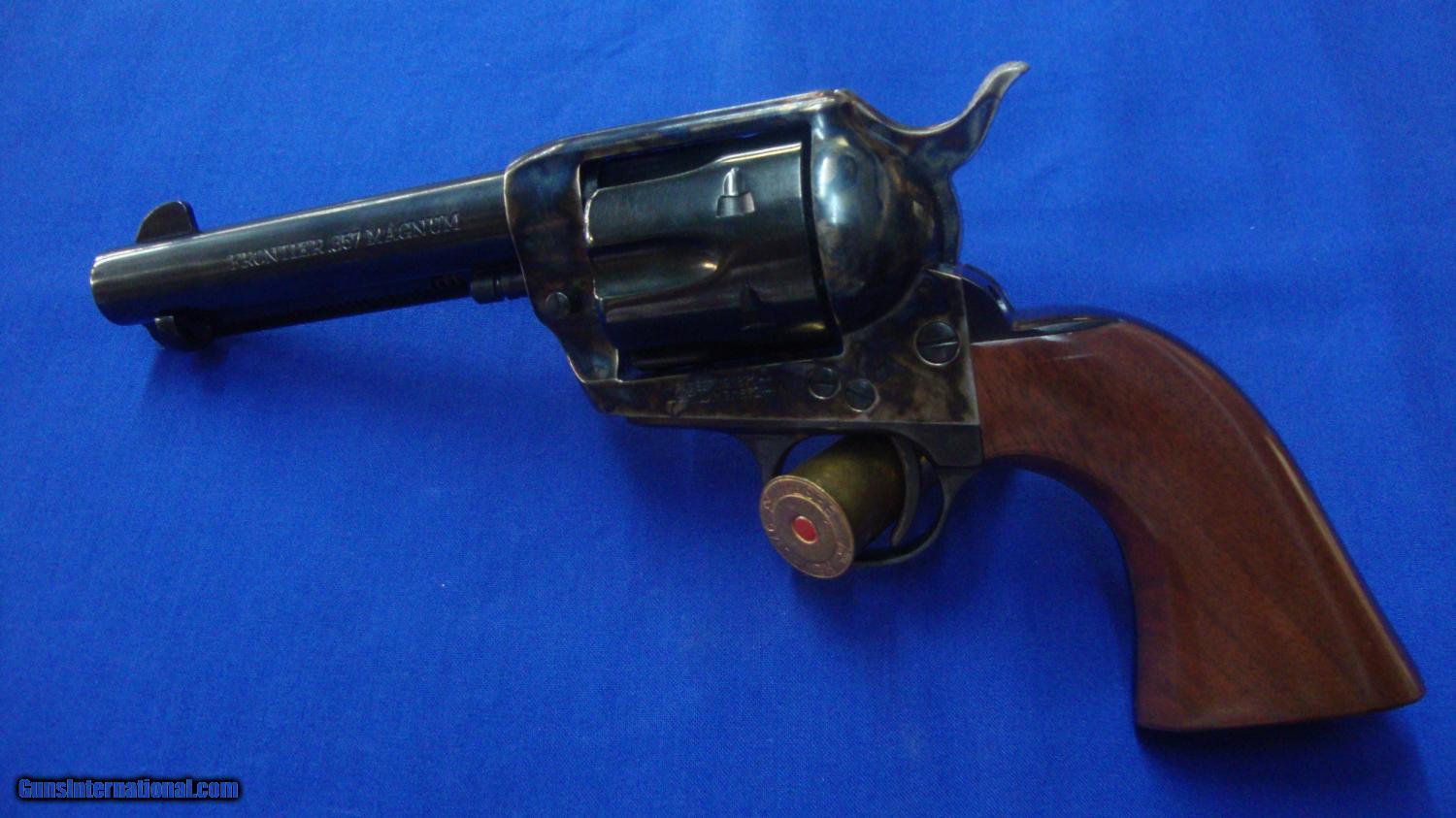 Description: Cimarron Frontier .357 4 5/8" barrel Case colored Beautiful walnut grips Like new, no box SOLD |