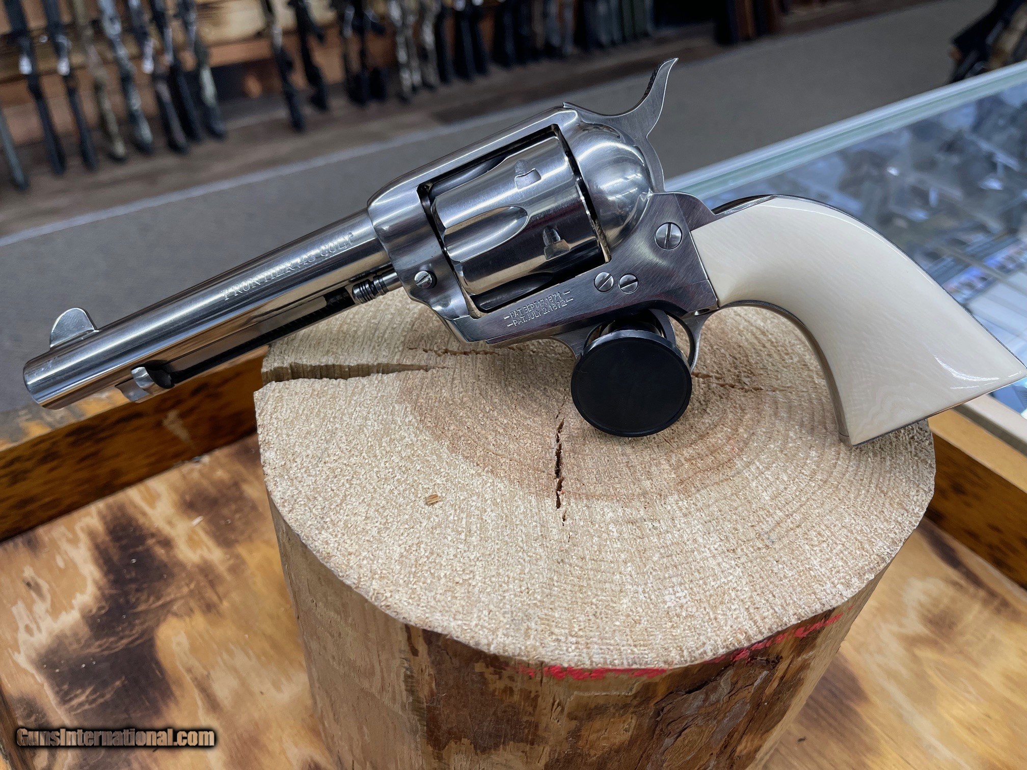 Description: Guns Listing ID: 496180 Cimarron Frontier 45 Clot with Ivory and wood grips Weight 2.8000 Caliber .45 Colt (.45 Long Colt) Barrel Finish Stainless Barrel Length In Inches 5.5 \" Cylinder Capacity 6 Frame Color STAINLESS Frame Designation PRE-WAR Grips Material WOOD and Ivory Hammer Type STANDARD Sight Type FIXED Trigger Type STANDARD SOLD Manufacturer: CIMARRON Model: FRONTIER Caliber Info: .45 COLT/.45 ACP Condition: Used - Non-Certified Barrels: 5.5 Action: REVOLVER Finish: silver |