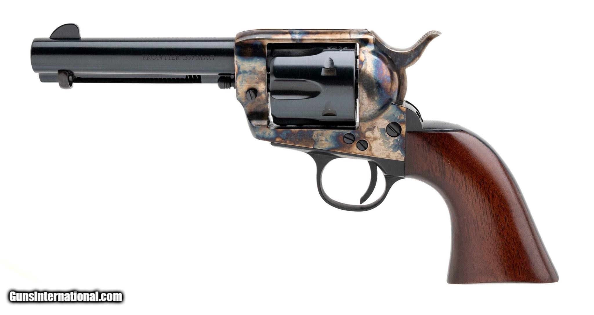 Description: Guns Listing ID: 563482 SN: E109597. Modern production, .357 Magnum with a 4.75\" barrel. Bore is bright with strong rifling. Blued finish single action revolver with color case hardened frame and wood grips. Overall condition is near excellent. Comes with box. (PR74315) SOLD Manufacturer: CIMARRON Model: FRONTIER 1973 SA Caliber Info: .357 MAG Condition: Used - Non-Certified Barrels: 4.75" BARREL Action: REVOLVER Finish: case hardened/black |