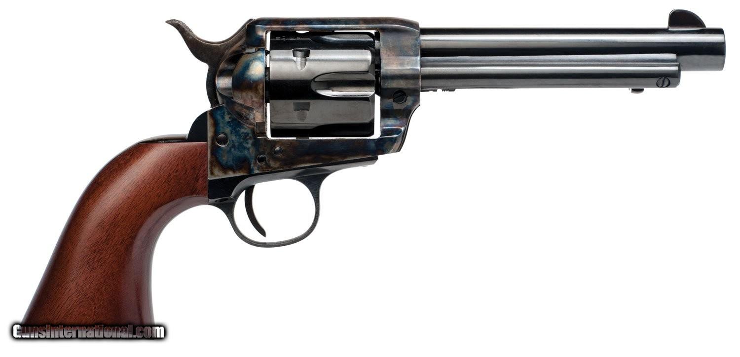 Description: Guns Listing ID: 140331 Cimarrons Frontier PreWar version 18961940 are arguably the most famous sixgun of the Old West if not the best known in the entire world. Cimarrons Frontier models look and heft just like those guns used by the famous and infamous characters of the Wild West. Men like Wyatt Earp Bat Masterson Texas\" John Slaughter the Texas Rangers and the Arizona Rangers all packed them to enforce law and order. While men such as Jesse James Billy the Kid Johnny Ringo Butch Cassidy and members of his \"Hole in the Wall\" gang and other hombres who as they said in the Old West \"threw a wide loop\" used them to ply their lawless trade. Cimarrons replica inspired by an original in our collection sports the traditional blue and color case hardened finish with onepiece walnut grips. Our replicas are exact duplicates of the originals.\ Manufacturer: CIMARRON Model: FRONTIER Caliber Info: .45 LC Condition: new Barrels: 5.5" BARREL Action: REVOLVER Finish: BLUED Weight: 2.3 LBS. Price: $603.99 Contact Seller |