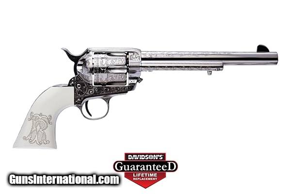Description: Guns Listing ID: 685080 This is a brand-new gun. There are no new listings for this gun. Excellent condition. New in Box Stainless Steel laser engraved with \"TR\" on right side grips. 6 shot, 45LC. Lifetime Warranty NO OFFERS ACCEPTED SOLD Manufacturer: CIMARRON Model: Frontier Teddy Roosevelt Caliber Info: 45LC Condition: Used - Non-Certified Barrels: 7.5 BARREL Finish: STAINLESS STEEL |