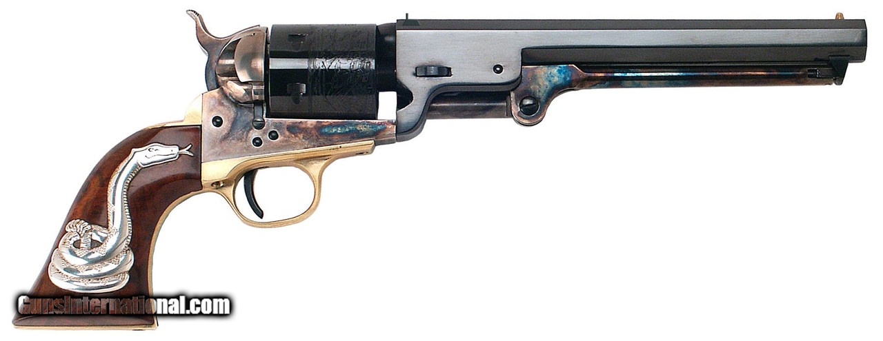 Description: Manufacturer: Cimarron Firearms Model: Man With No Name® Conversion SKU: CA9081SSI01 Caliber: .38 Special Capacity: 6 Rounds Barrel Length: 7.5" Octagon Finish: Blued Frame: Case Hardened, Brass Back Strap and Trigger Guard Grip: Walnut Inlaid with Man with No Name Sterling Silver Rattlesnake Weight: 3.05 lbs Sights: Fixed All items are factory new in box unless otherwise stated. Based on the information available to us, the above specifications describe this item to the best of our knowledge. For further information, please contact or visit the manufacturer's . SOLD |