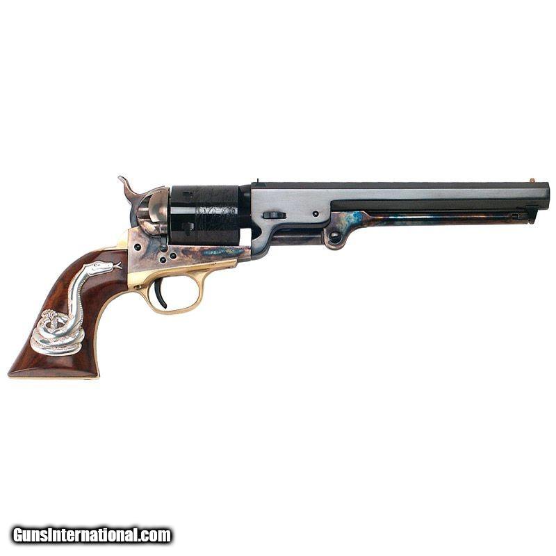 Description: Guns Listing ID: 13618 Another gun in Cimarrons line of faithful Colt reproductions the Cimarron SA Frontier is a family of six-shot revolver chambered in either 357 Mag38 Special or 45LC. Models in this family are available with barrels 3.5 4.75 5.5 or 7.5 in length. The Cimarron SA Frontier features a case-hardened frame blue or stainless steel finishes alongside a one-piece walnut handle. The original Colt that Cimarrons SA Frontier was designed from was made popular by both criminals and law enforcement officials in the Wild West. Details Action Single - Caliber .38 Colt and SW Special - Capacity 5 - Finish Standard Blued - Frame Case Hardened - Grip 1 Piece Walnut w Rattle Snake Inlay - Barrel Length 7.5 - Weight 3.05 lb - Replica of the 1851 Conversion used in the 1960s Spaghetti Westerns. Manufacturer: CIMARRON Model: MAN WITH NO NAME Caliber Info: .38 SPL Condition: new Barrels: 7.5" BARREL Action: SINGLE SHOT Weight: 3 Price: $899.99 Contact Seller |