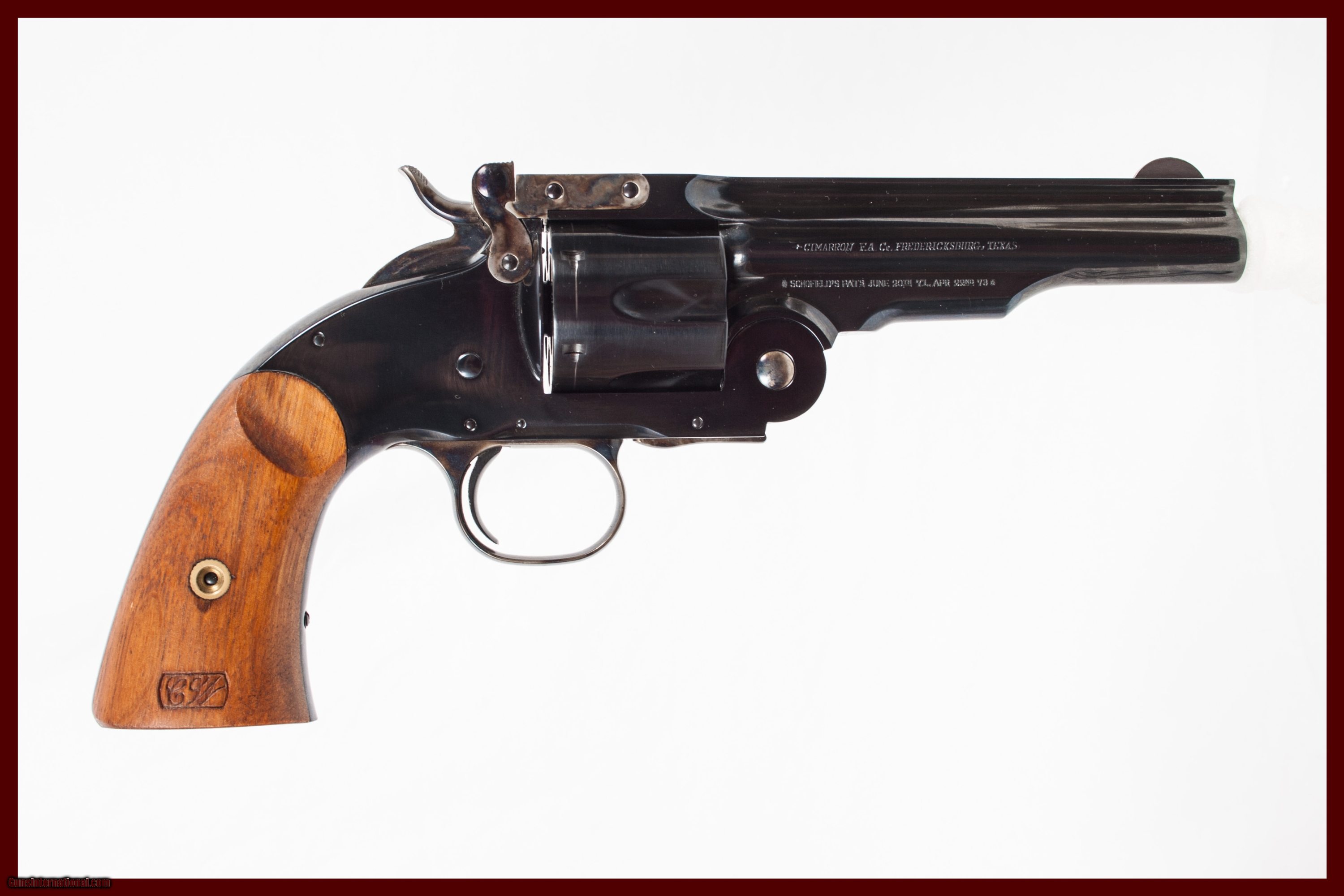 CIMARRON MODEL 3 SCHOFIELD CHAMBERED IN 38 COLT WITH A 5 INCH BARREL. THIS GUN IS IN EXCELLENT CONDITION AND IS COVERED BY DURY'S LIFETIME WARRANTY.