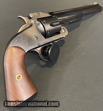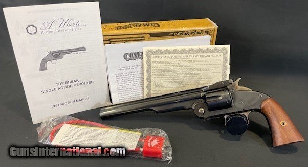 Description: Guns Listing ID: 577990 Cimarron Uberti S&W Model No.3 First model American 45 Colt, 8\" barrel NIB Davidson‚s 8/20 Cimarron Firearms Model No. 3 1st Model American 45 Colt (Long Colt) Revolver 8\" Blued Barrel 6 Round Walnut Grip Product Information Cartridge 45 Colt (Long Colt) Action Type Revolver Capacity 6 Round Weight 49.28 Ounce Barrel Length 8 Inches Barrel Finish Blued Threaded Muzzle No Compensated No Front Sight Blade Rear Sight Fixed Notch Frame Material Steel Frame Finish Blued Grip Material Wood Grip Style Smooth Grip Color Walnut Manufacturer Uberti Country of Origin Italy Trigger Type Single Action Manufacturer: CIMARRON Model: No. 3 American Caliber Info: .45 LC Condition: Used - Non-Certified Barrels: 8" BARREL Action: REVOLVER Finish: BLUED Weight: 3 LBS. Price: $928.99 Contact Seller |