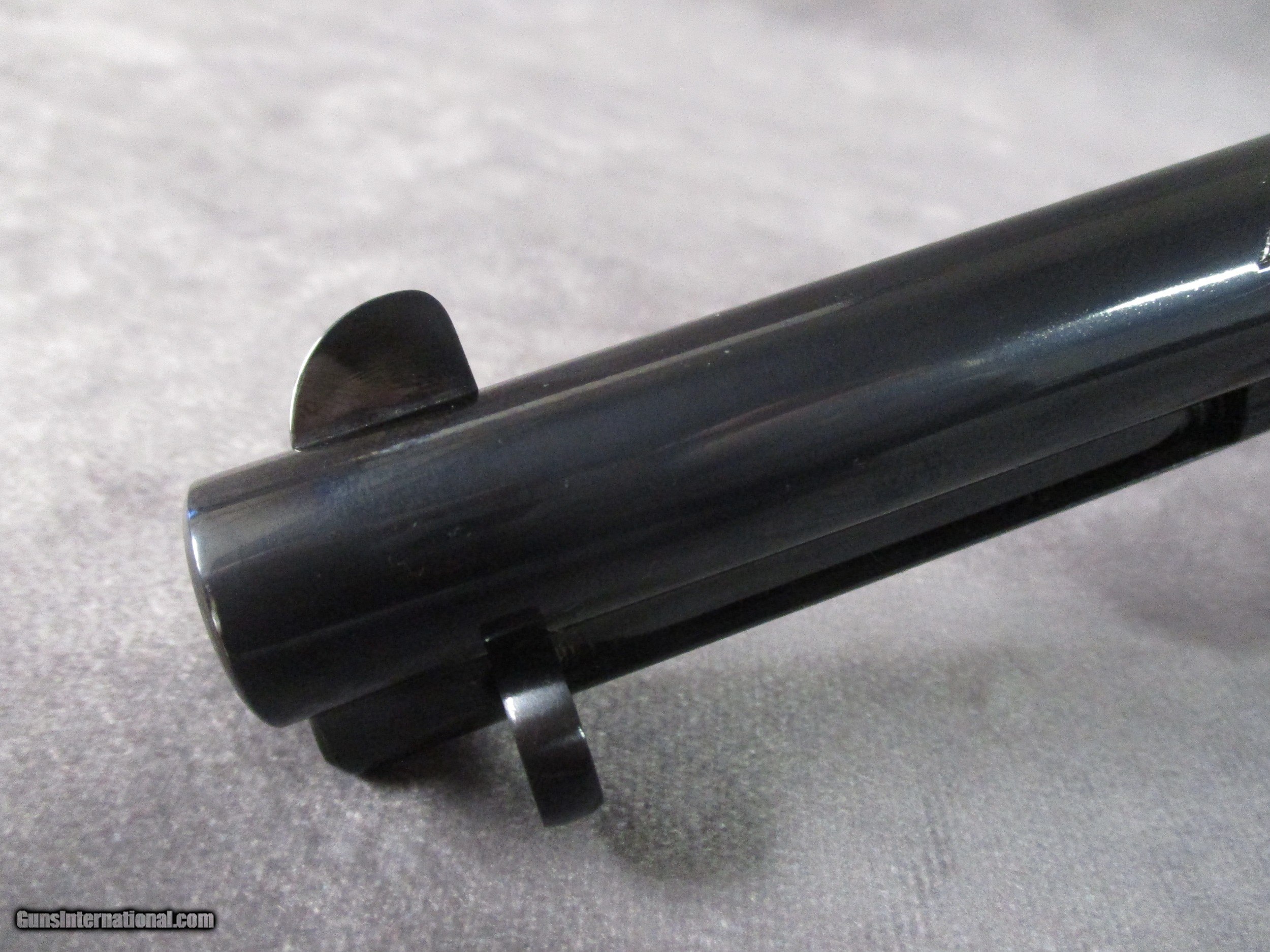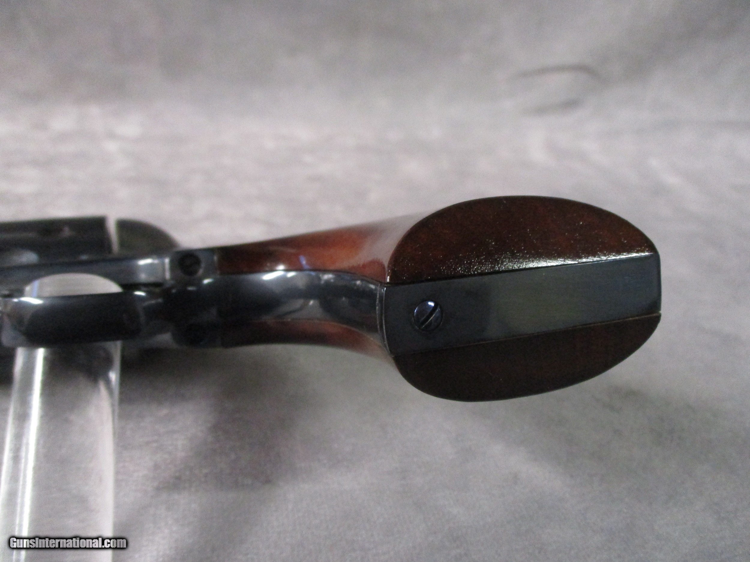 Description: The Cimarron Model P is a fairly accurate reproduction of the Colt Single Action Army (SAA) revolver, also known as the Peacemaker. The Old Model version of the Model P is based on the SAA as it was produced by Colt between 1873 and 1896. As such, the base pin is retained in the frame by a screw rather than the more commonly known cross pin and spring. This previously owned example is the blued, 4-3/4” barrel version chambered for the legendary .45 Colt, the cartridge most associated with the Peacemaker having been chambered for that round more often than the others. In total, between the standard, Bisley, and Flat-Top Target versions of the First Generation (1873-1940), up to 158,884 were chambered for the .45 Colt compared to 71,392 for the .44-40 Winchester round. One simple reason for the .45 Colt's popularity back in the Old West was its stopping power. It was well suited as a self-defense round. Today, the .45 Colt is still chambered in SAA replicas such as the Model P shown here due to its popularity with the Cowboy Action shooting groups, particularly the Single Action Shooting Society (SASS). Given the 4.75” barrel, in Old West terminology, this revolver would be considered a “Quickdraw” model, named for its ability to be quickly withdrawn from its holster. There are two other original barrel lengths for an SAA. The Cavalry Model, with a 7.5” barrel, named for its use by the U.S. Cavalry, and the Artillery Model with a 5.5” barrel, again named for its use by a branch of the U.S. Army, in this case the artillery branch. In terms of condition, the revolver is in excellent shape. The loading gate exhibits some loss of the case hardening but the rest of pistol looks to be nearly in factory new condition. The bore is in pristine shape while the cylinder has very little in the way of a turn ring on the cylinder. The grips are quite beautiful with respect to wood grain and finish. There is no box. SOLD Handgun Caliber: .45 Colt Manufacturer: Cimarron Arms Model: Model P Serial Number: 157527 Bore: Rifled, 6 grooves Chambers: 6 Ejectors: Manual, ejector rod Condition: Excellent Barrel Type: Round Action: Single-Action Triggers: Single Action Army trigger Stock: Wood grips Finish: Blued, Color case hardened Sights: Fixed sights, sight radius 5.75 inches (146 mm) Manufacture Date: 1998 |