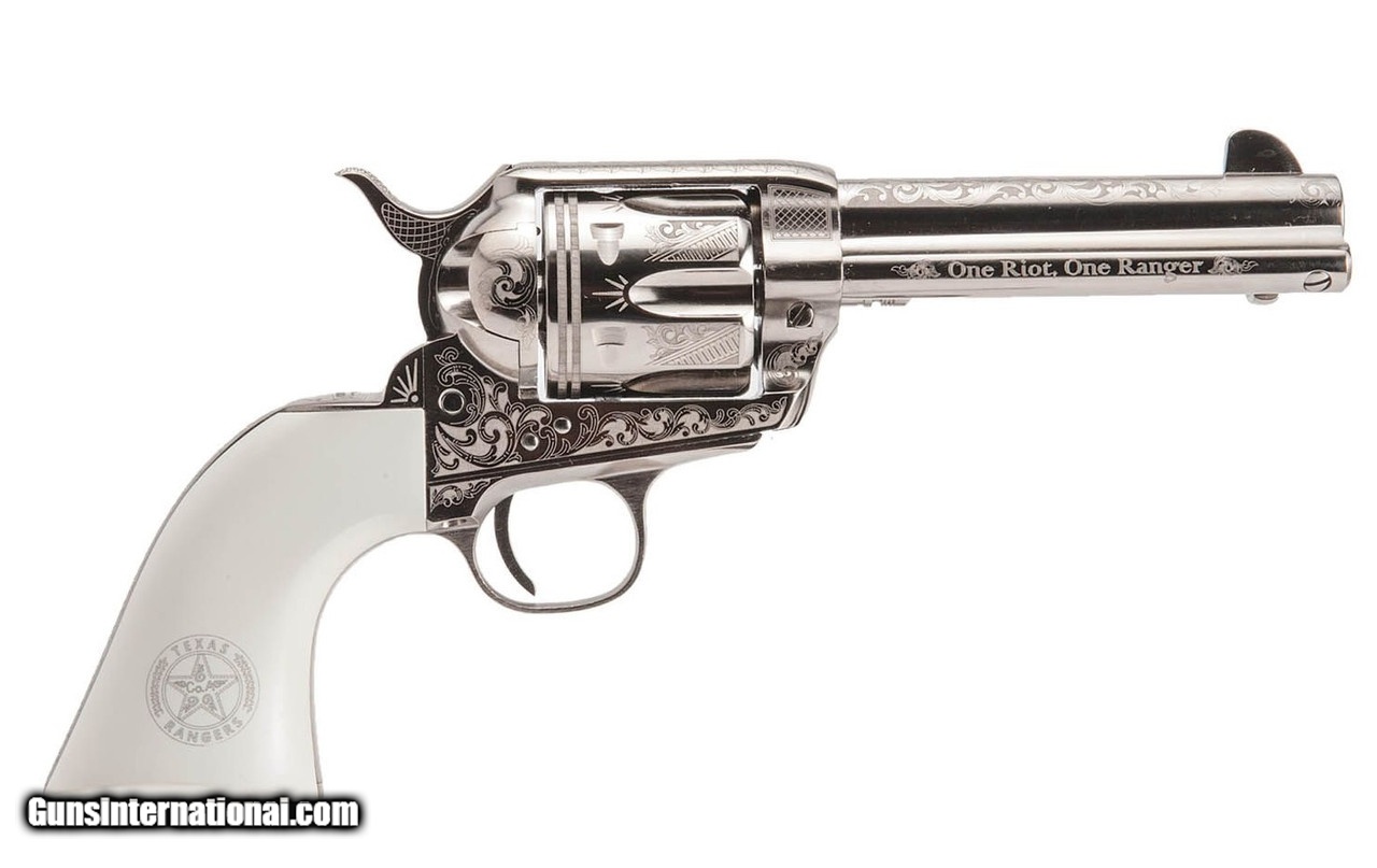Description: Manufacturer: Cimarron Firearms Model: Texas Ranger Sku: PP410LNTXR Caliber: .45 Colt Capacity: 6 Rounds Barrel Length: 4.75" Frame: Pre-War Finish: Nickel-Plated Laser Engraved Sights: Fixed Weight: 39.8 oz Grips: Polymer Simulated Ivory All items are factory new in box unless otherwise stated. Based on the information available to us, the above specifications describe this item to the best of our knowledge. For further information, please contact or visit the manufacturer's . SOLD |