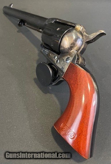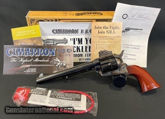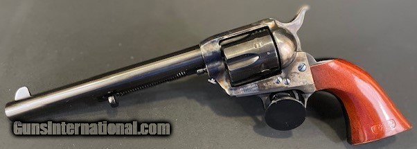 Description: Guns Listing ID: 583816 Cimarron CA514M00 Model P US Cavalry 45 Colt (LC) 6 Shot, 7.50\" Blued Steel Barrel & Cylinder, Color Case Hardened Steel Frame, Walnut w/OWA Cartouche Stamp Grip, Exposed Hammer Cimmaron Import of a Uberti 1873. Old frame U.S. Cavalry configuration. .45 Colt, 7.5\" barrel, US markings, F.Co. 7 Cav marked on the grip frame. Cartouche on the left grip panel. Replica of an 1873 Custer Cavalry gun. New Davidson‚s 2/18 The Model P U.S. Calvary is a detail perfect rendition of Custer‚s ill-fated 7th Cavalry‚s, legendary revolver. Each authentic 7.50\" barreled, firearm is properly stamped with Ainsworth‚s OWA cartouche on the walnut stock, government proof marks and the inspector‚s initials are found in all of the appropriate locations and the last 4 numbers of the serial numbering is on the cylinder, as well as on the color case hardened frame, trigger guard and blued butt strap. The proper 2-line patent dates and the U.S. stamping is also found on the left side of the frame, as with genuine \"Custer era\" cavalry revolvers. This model is limited to just 2,000 units of each of Custer‚s five companies C,E,F,I and L, that perished under his command at the Little Big Horn. Brand Cimarron Category Revolvers Series US Cavalry Model Model P Caliber 45 Colt (Long Colt) Barrel Length Range 7\" to 7.99\" Capacity 6 Action SAO Frame Finish Color Case Hardened Frame Material Steel Sights Wide Front Barrel Finish Blued Barrel Material Steel Grips Walnut w / OWA Cartouche Stamp Cylinder Material Steel Cylinder Finish Blued Barrel Description Stainless Steel Barrel Length 7.50\" Max Capacity 6 Weight 2.56 lbs Frame Description Steel Frame Hammer Style Exposed Manufacturer: CIMARRON Model: US CAVALRY Caliber Info: .45 LC Condition: Used - Non-Certified Barrels: 7.5" BARREL Action: STRIKER FIRED Weight: 2.56 lbs. Price: $744.99 Contact Seller |